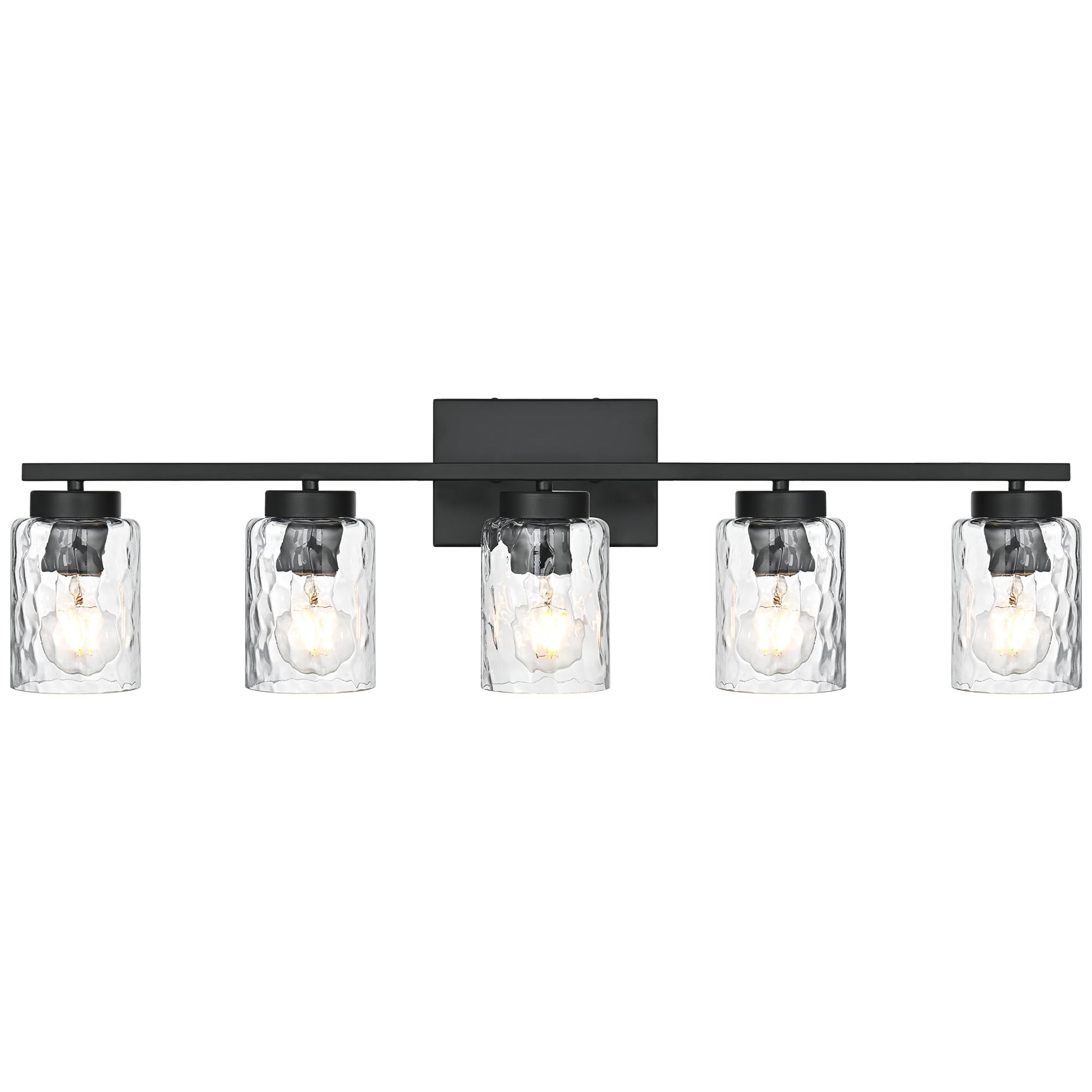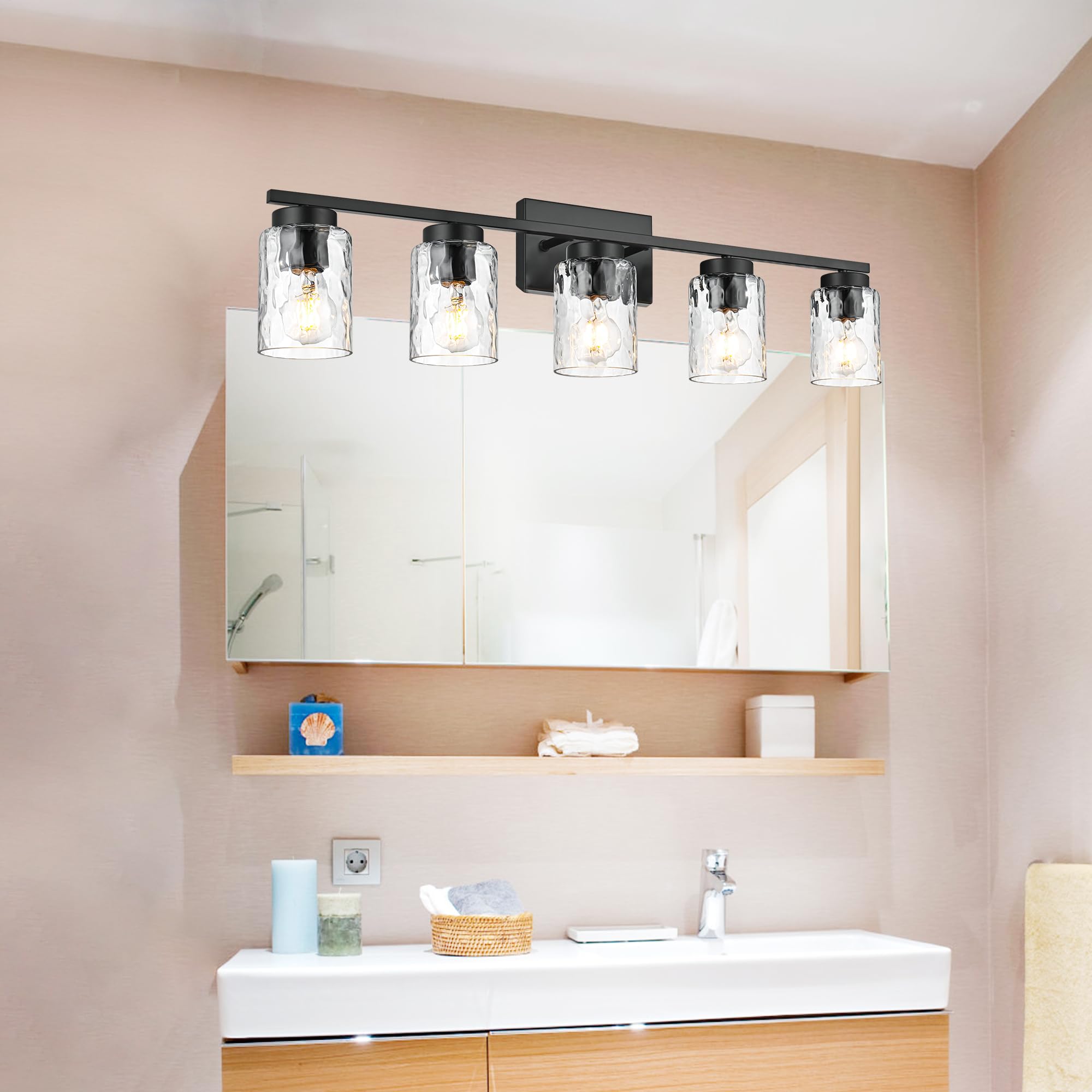 - Modern Lighting Refined Design:This 5 light Industrial bathroom vanity light made of superior iron material and the clear hammered glass shade .highly suited for any decoration style, such as modern, contemporary, vintage, minimalist,and so on. It is the perfect choice for your home lighting and decors .