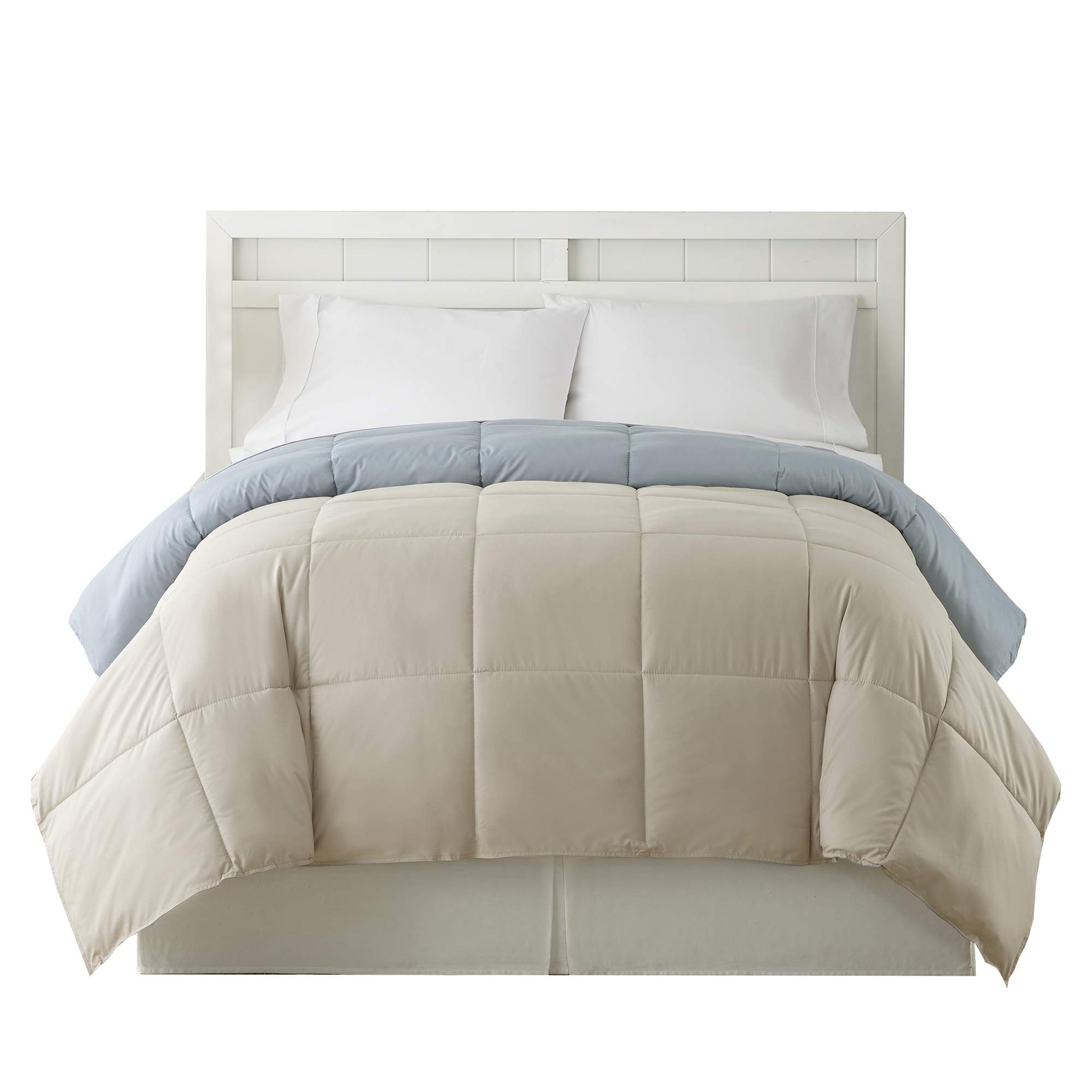 Gray and Blue Genoa King Size Box Quilted Reversible Comforter