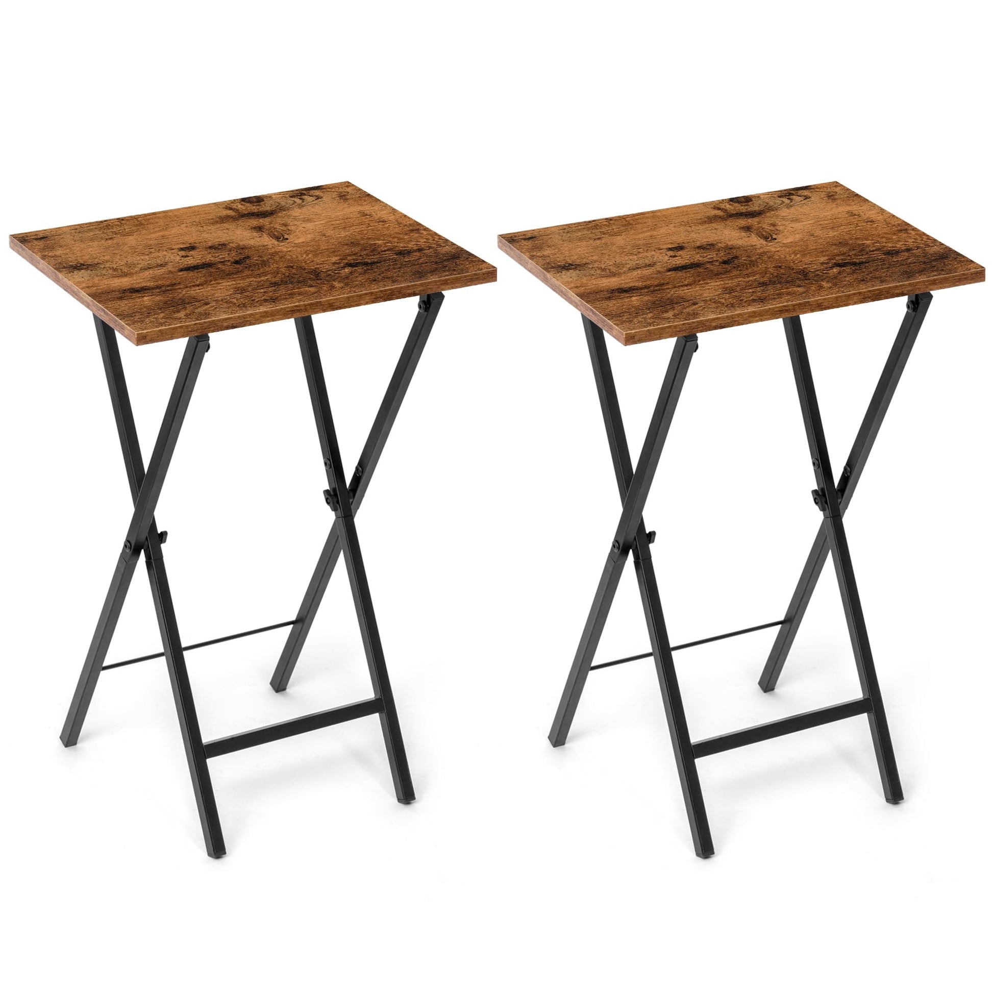 - Stylish Rustic Design The rustic brown color and MDF panel of this TV tray table give it a charming and timeless aesthetic. It can seamlessly blend in with various decor styles, adding a touch of warmth and character to any room. Whether it's used for practical purposes or as a decorative piece, this table is sure to enhance the overall ambiance of the space.