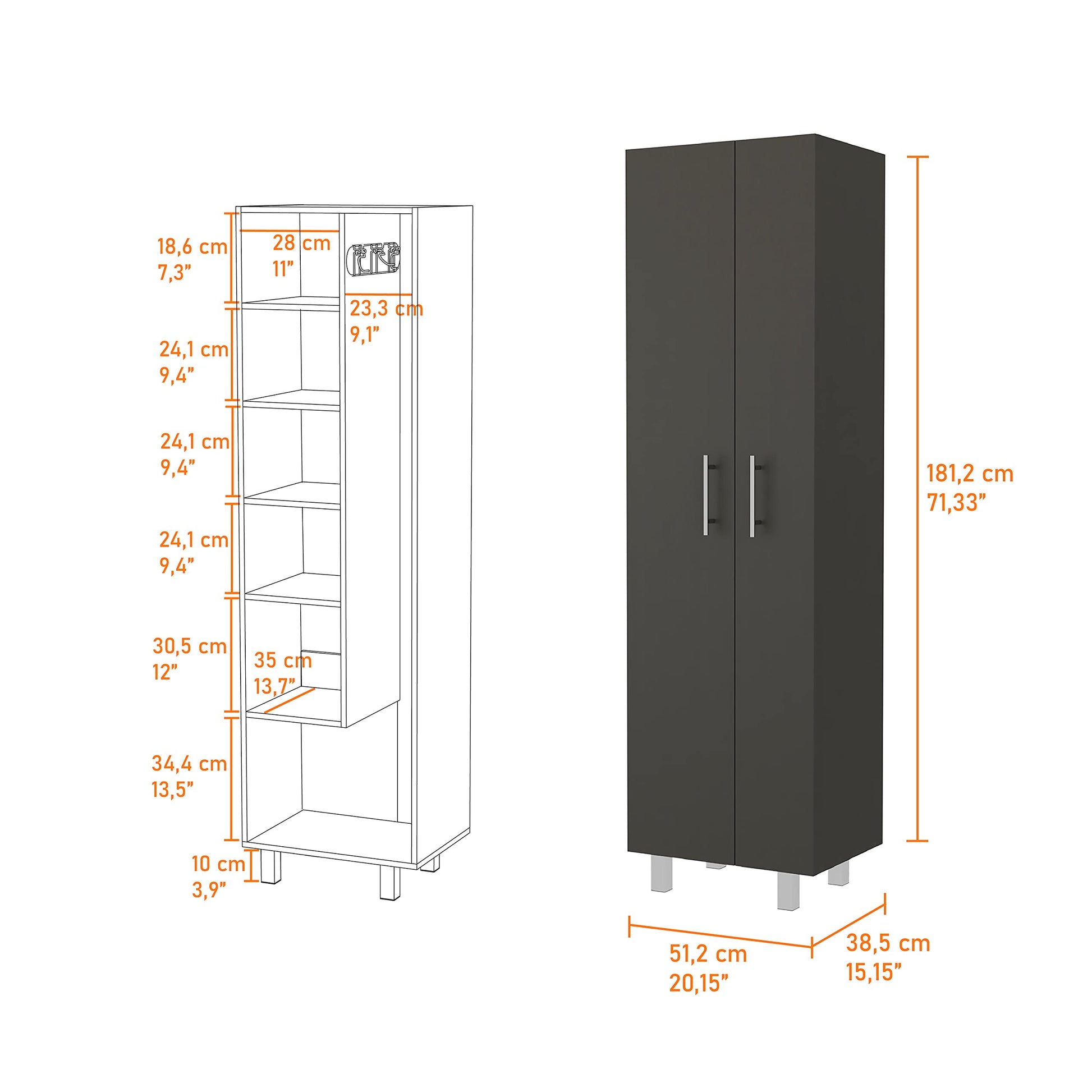 Product Dimensions | 15.16"D x 20.16"W x 71.34"H |
