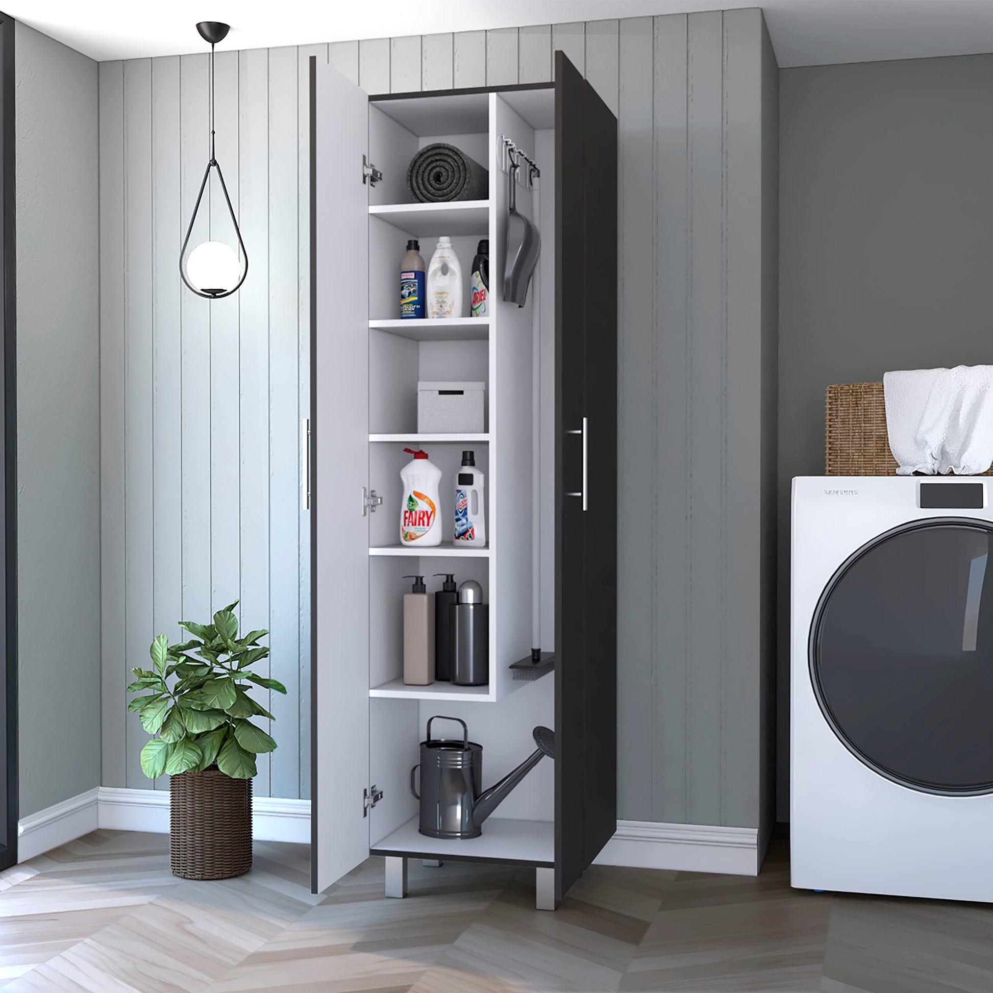 - Plenty of Work Space: This storage cabinet is designed with five interior shelves and a separate compartment on the right side, perfect for storing daily supplies and documents.