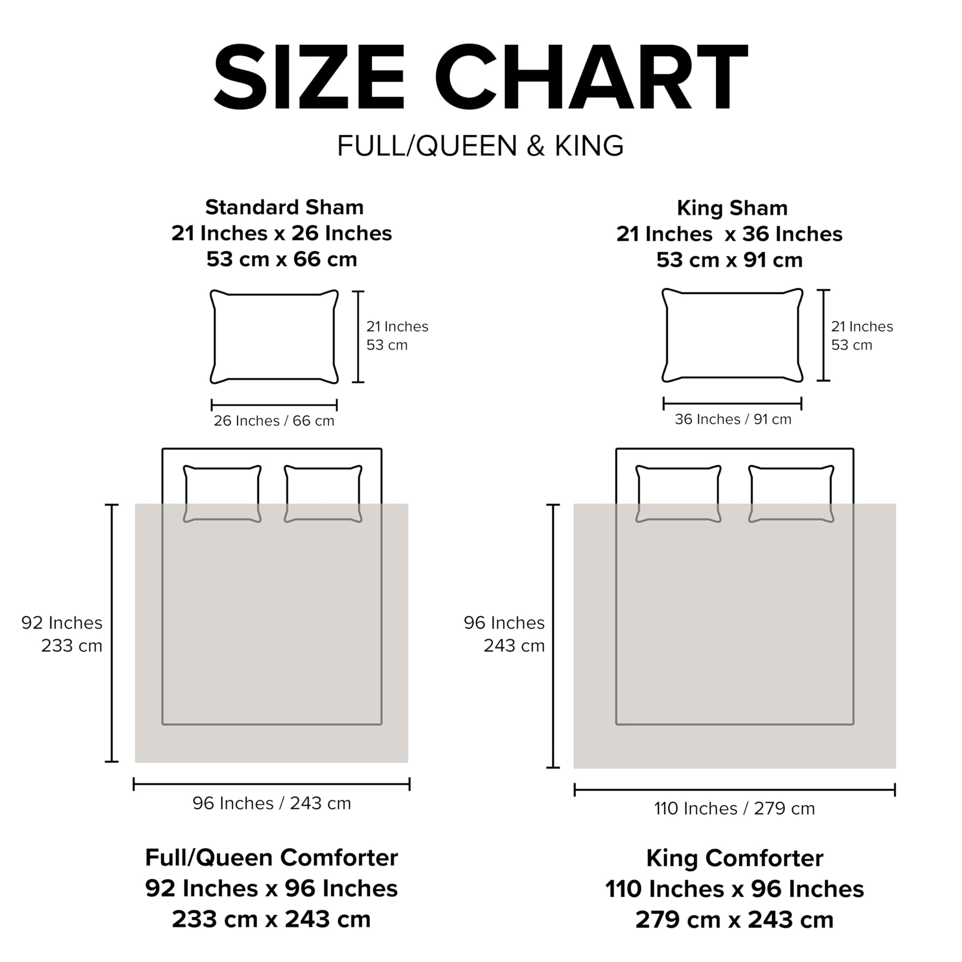 - King/Cal King Size Comforter Set: The King/California King fluffy comforter measures 110-inch x 96-inch or 279cm x 243cm and comes with two matching soft shams measuring 21-inch x 36-inch or 53cm x 91cm. Size up for an oversized comforter look.