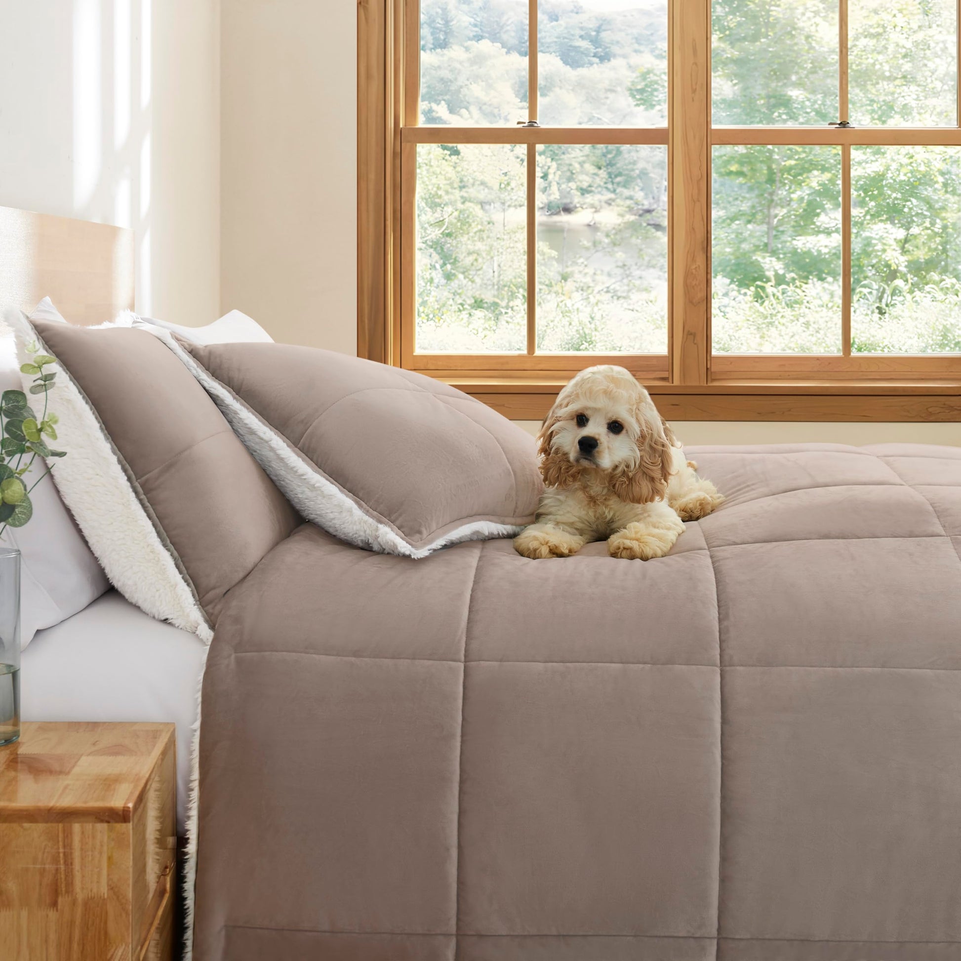 UGG Blissful Comforter Set with 2 Pillow Shams Reversible White Comforter Plush Fluffy Warm Bed Set Premium Hypoallergenic Down Alternative Bedding Breathable, King/California King, Brown Fawn