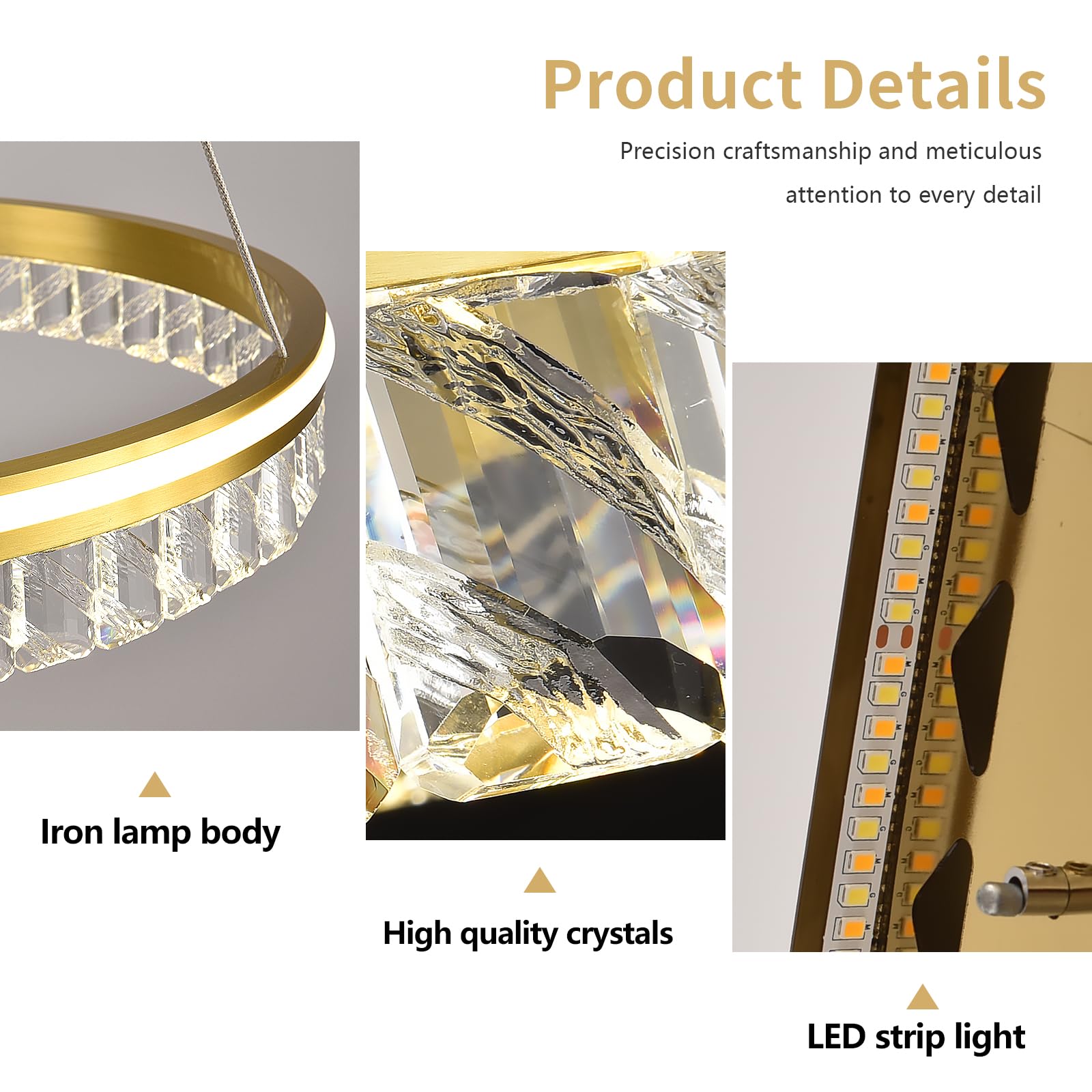 - LED crystal chandelier is suitable for dining table, kitchen island living room, bedroom, corridor, staircase, foyer and so on, it is a good helper for lighting or decorating, which makes the whole environment look more modern and exquisite.