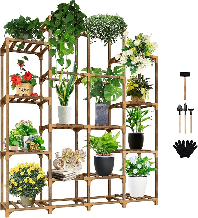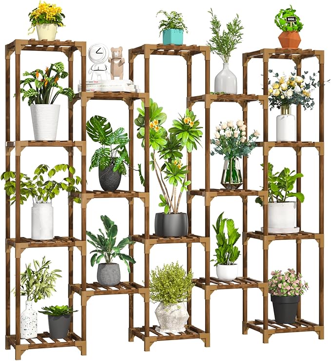 - The plant racks are made of high-quality wood and carbonized at high temperatures. More durable and easy to clean. No paint surface, healthy and eco-friendly, so the indoor plant stand is very safe for families with children and pregnant women. And the corner plant stand can be used indoors and outdoors.