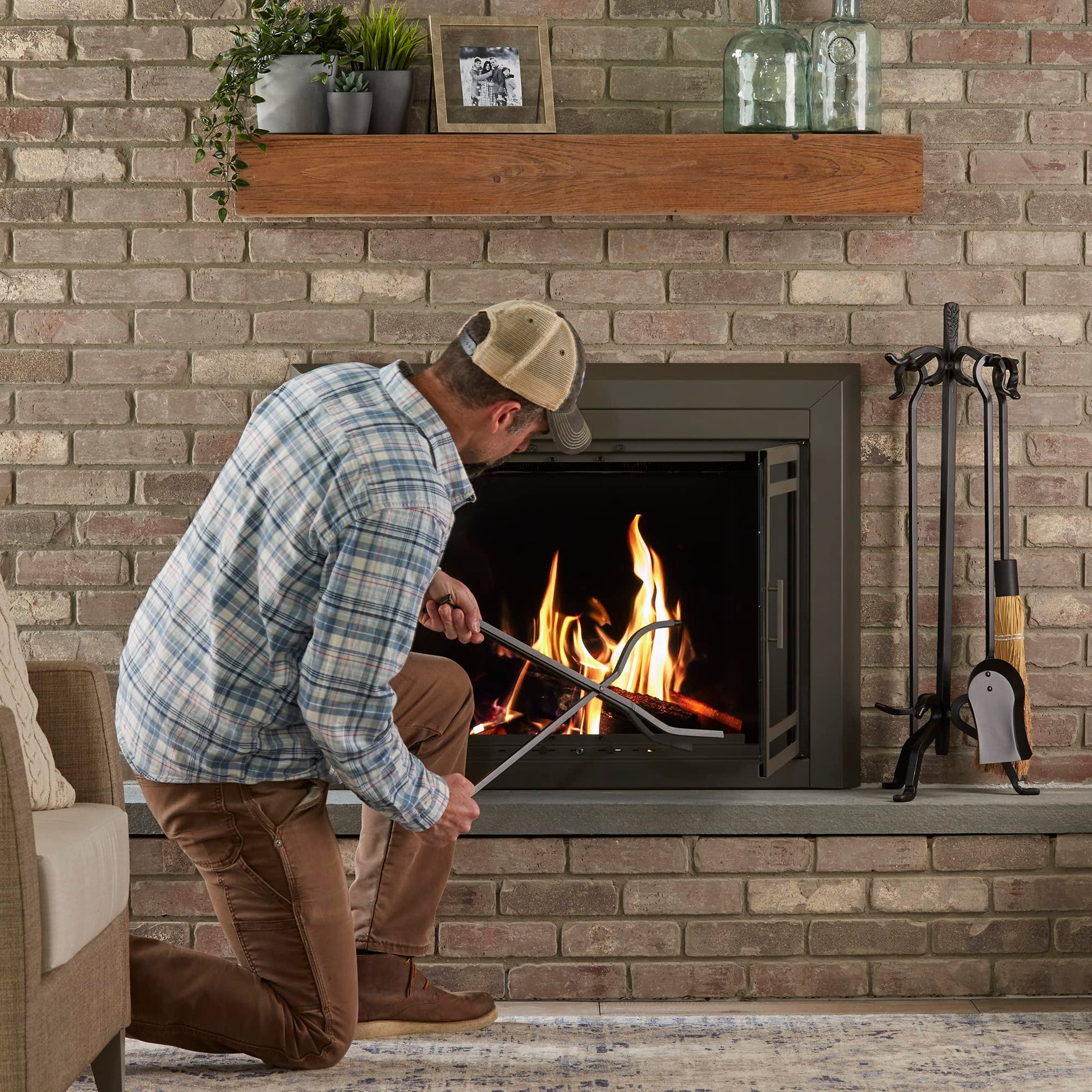 - FUNCTION AND DESIGN: The poker keeps you away from the flames while still allowing you to move logs and control the flames. The fireplace tongs help to safely place kindling and reposition logs. The fireplace shovel quickly and easily scoops used firewood and ash. The attractive stand keeps all the fireplace tools neat.