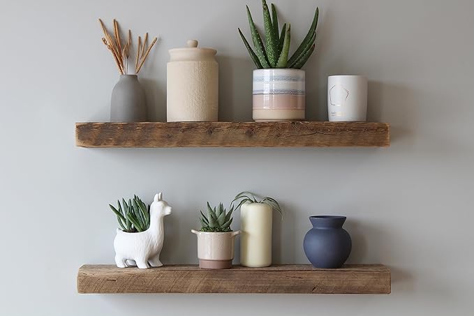 Accent Floating Shelves | Reclaimed Wide Plank Barn Wood with Floating Brackets