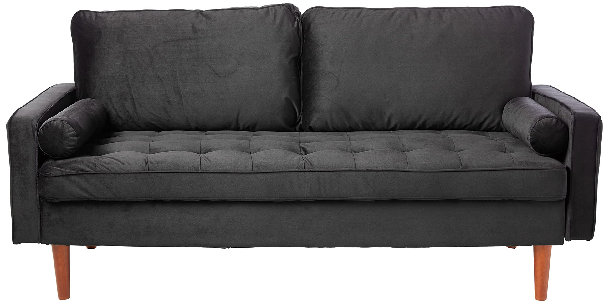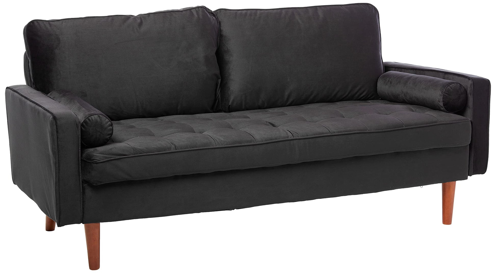 - LUXURIOUS COMFORT: Upholstered with velvet fabric and high-density foam cushions, the soft tufted seat and comfy back cushion on this mid century modern couch provide a relaxing place to unwind