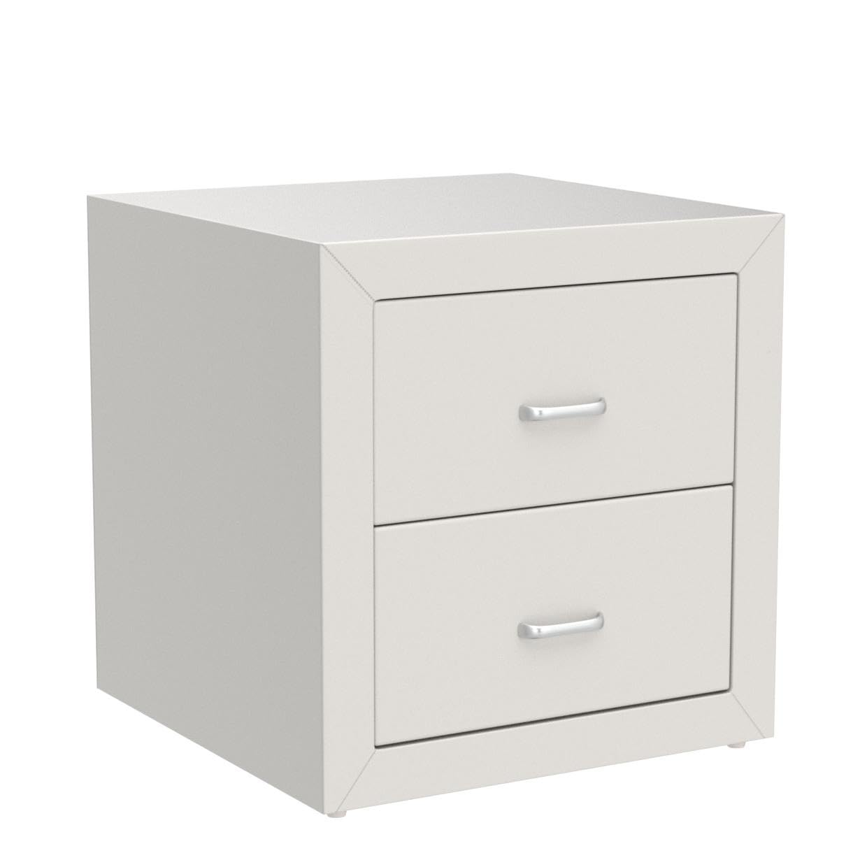 - Materials MDF, Faux Leather, Finish: White, Two drawers