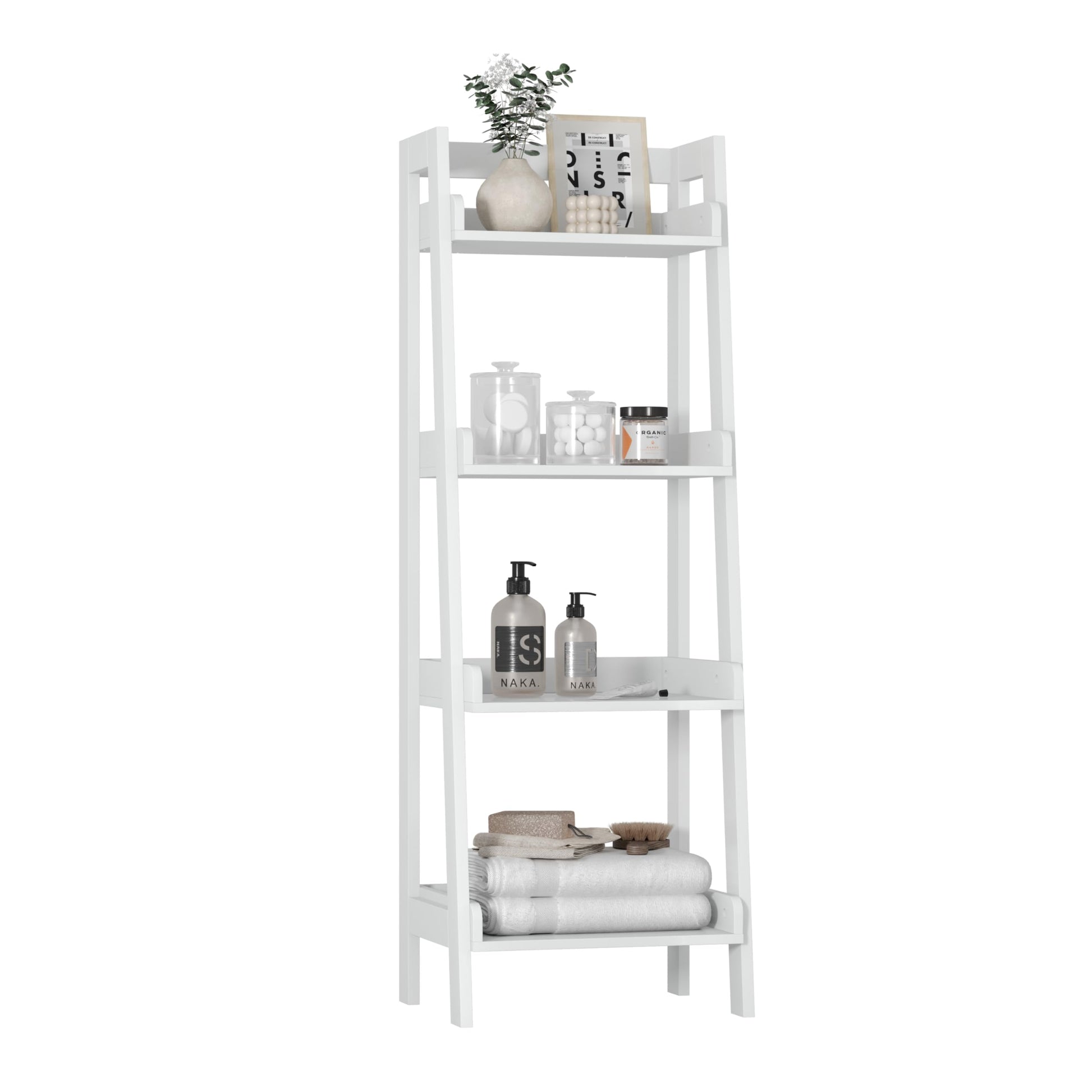 - This Bathroom Ladder Shelf Crafted From Quality Manufactured Wood .Plus , The Elegant Finish Looks Great With Any Of DÉCor Styles. it Features 4 fixed shelves-perfect for storing and displaying
