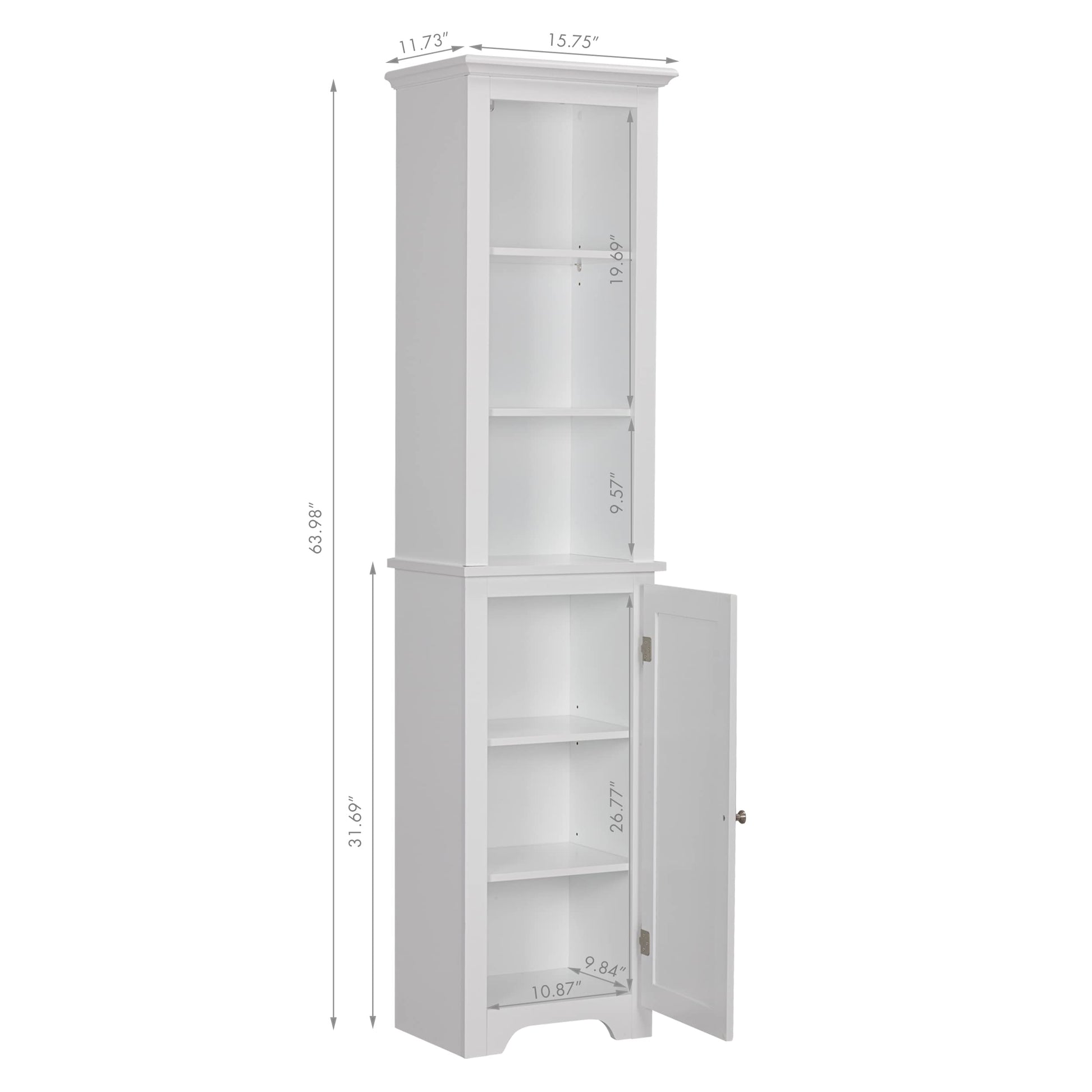 64" Freestanding Storage Cabinet, Bathroom Tall Silm Cabinet with Doors and Adjustable Shelves,