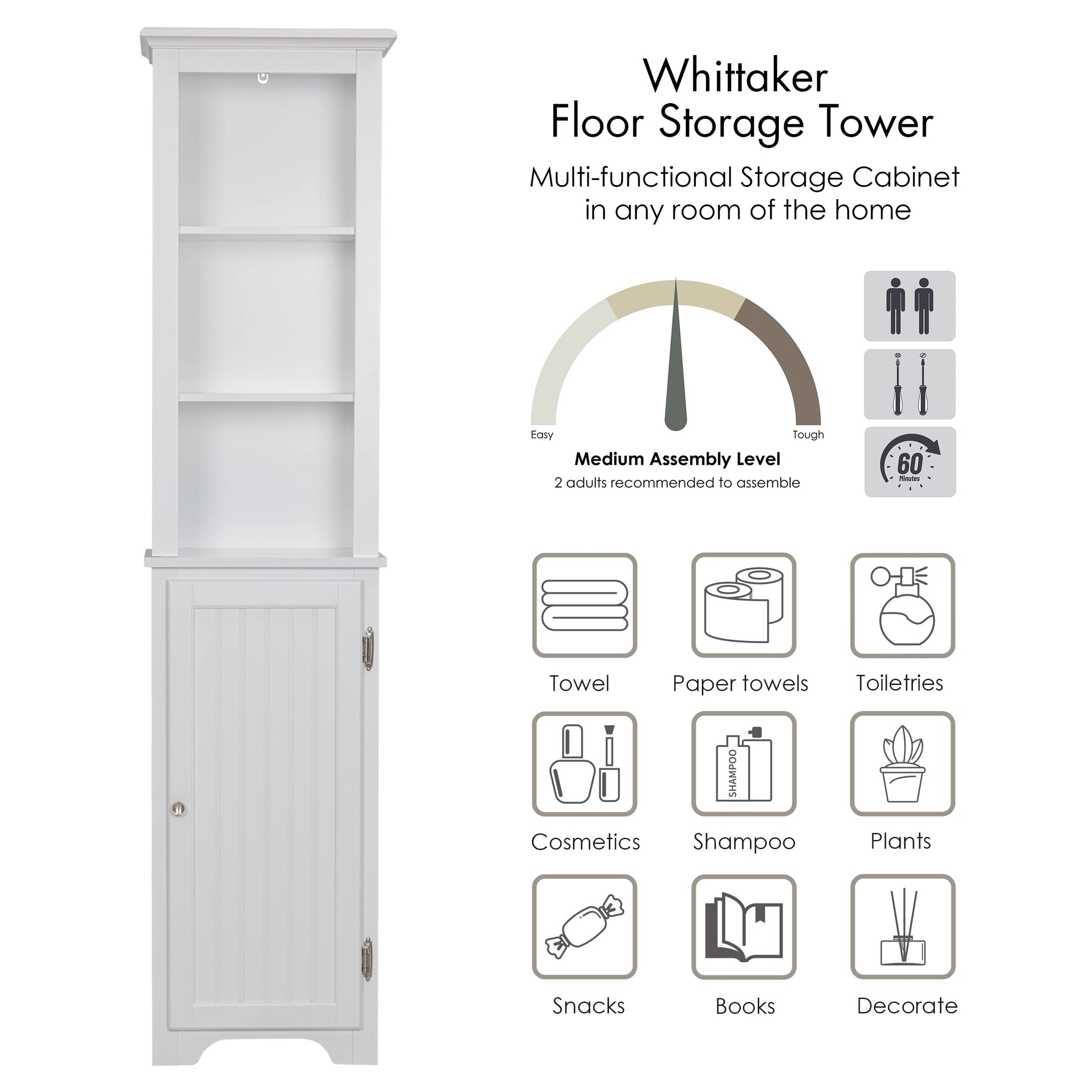 - Stable and safety: This free standing linen tower is equipped with an anti-tip device and American vintage spring hinges to improve safety and tightness; the shape is modern and elegant, suitable for most home decoration styles.