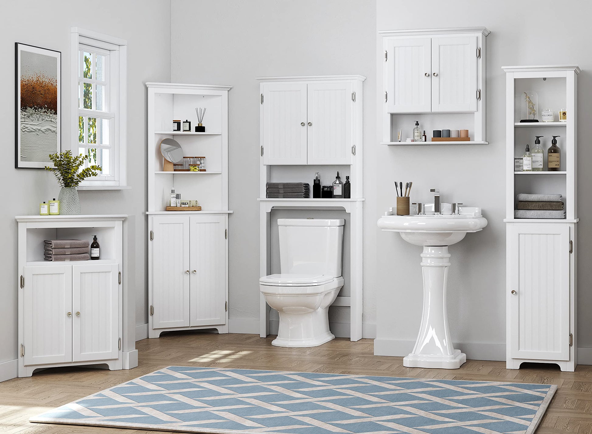 - High-quality floor cabinets: UTEX tall bathroom cabinet is made of high quality MDF, decorative beadboard paneling and nickel pulls for this make it more sturdy, stable and practical.