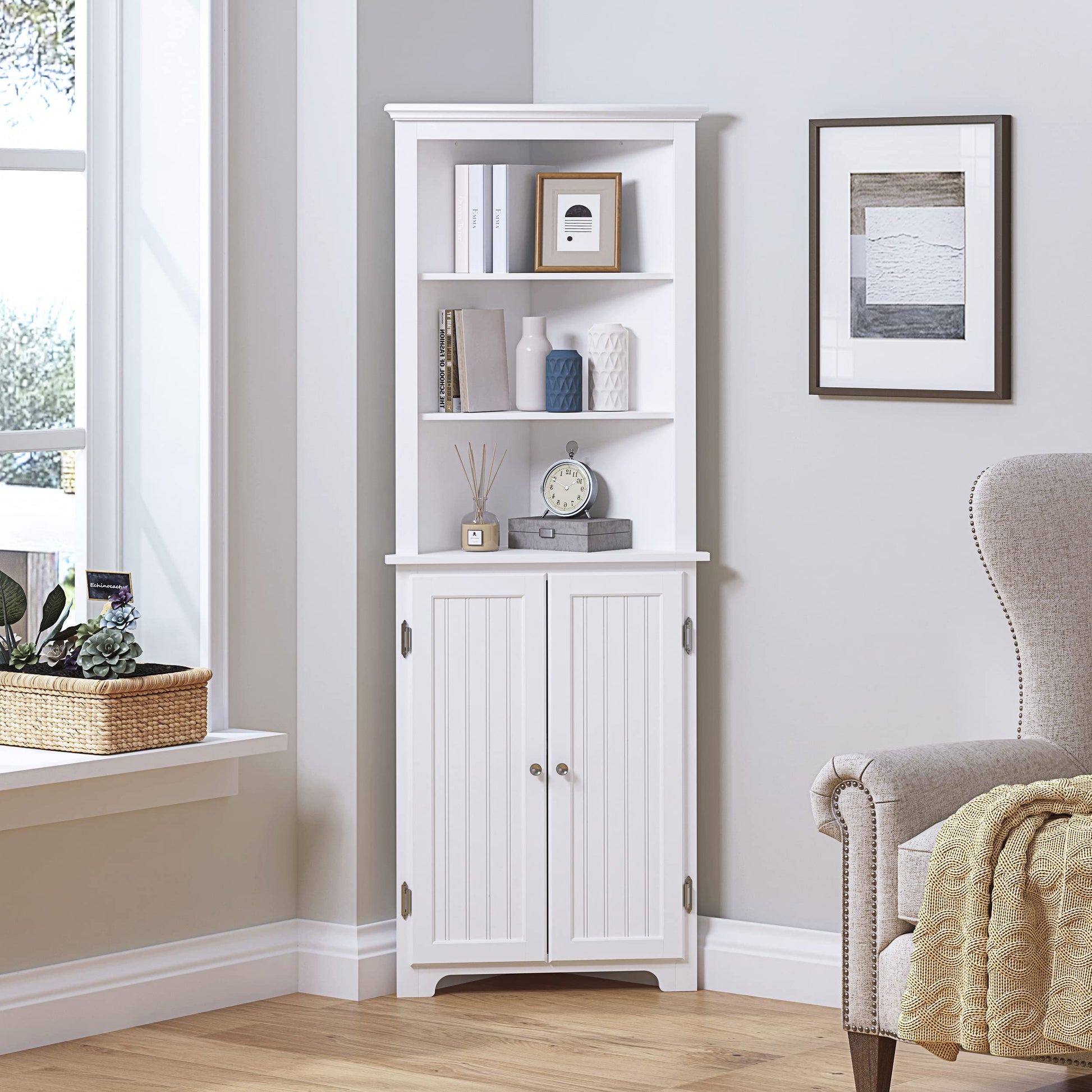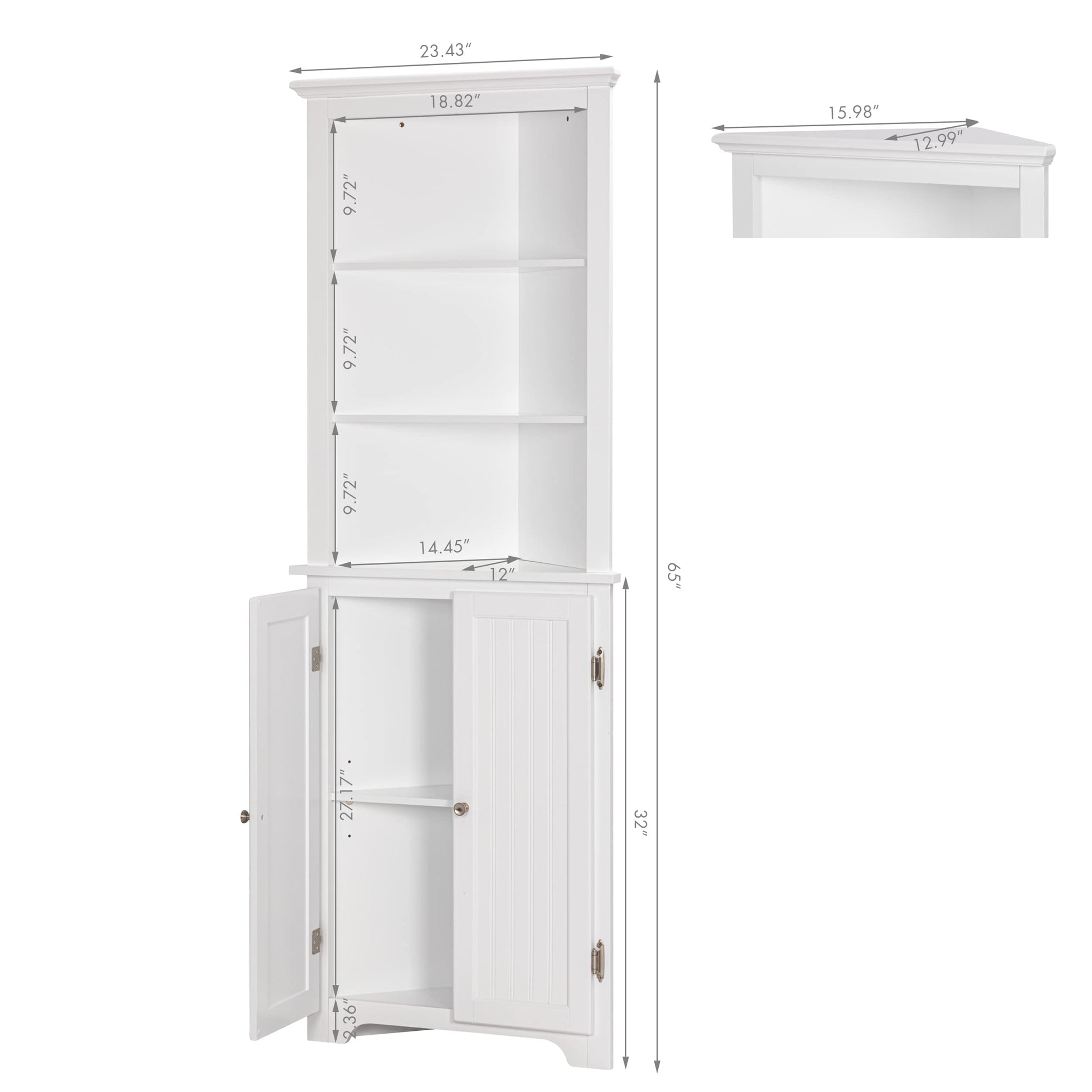 - High-quality corner cabinets: UTEX tall corner storage cabinet is made of high-quality MDF, inset beaded panel, and zinc handle with brush nickel plated this makes it more sturdy, stable, and practical.