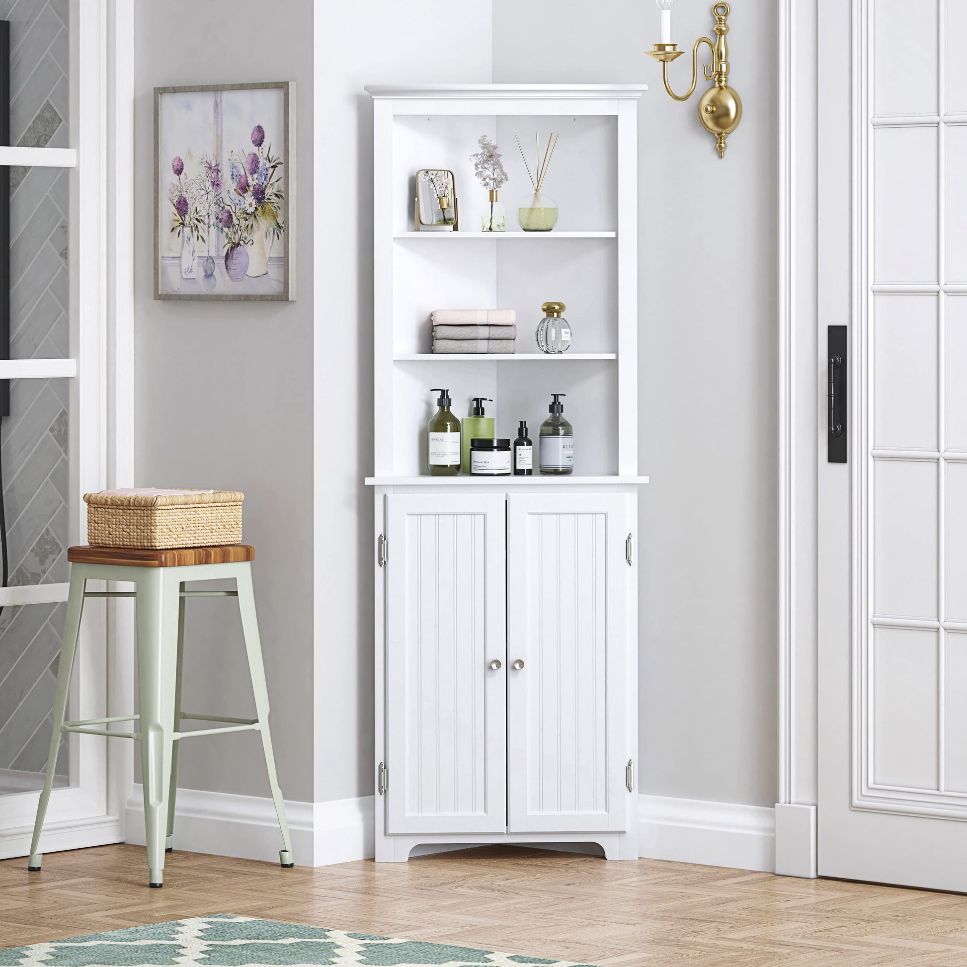 Tall Bathroom Corner Cabinet, Slim Floor Storage Bathroom Cabinet with Doors and Hutch
