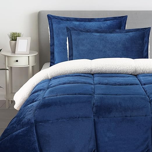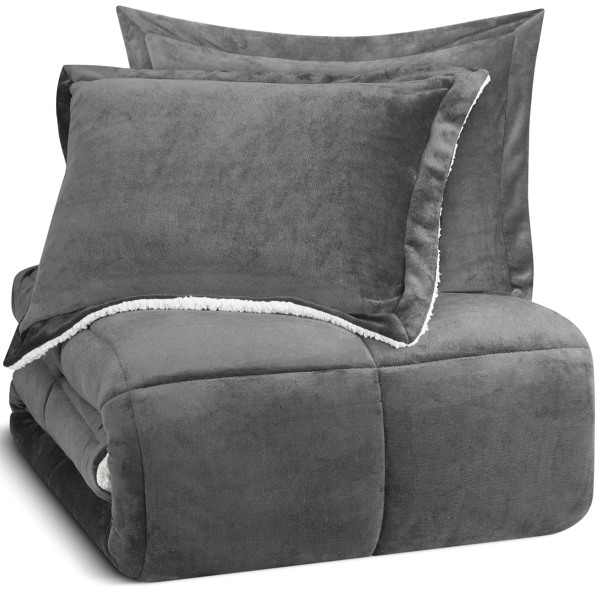 Micromink Sherpa Fleece Queen Comforter Set with 2 Pillow Shams