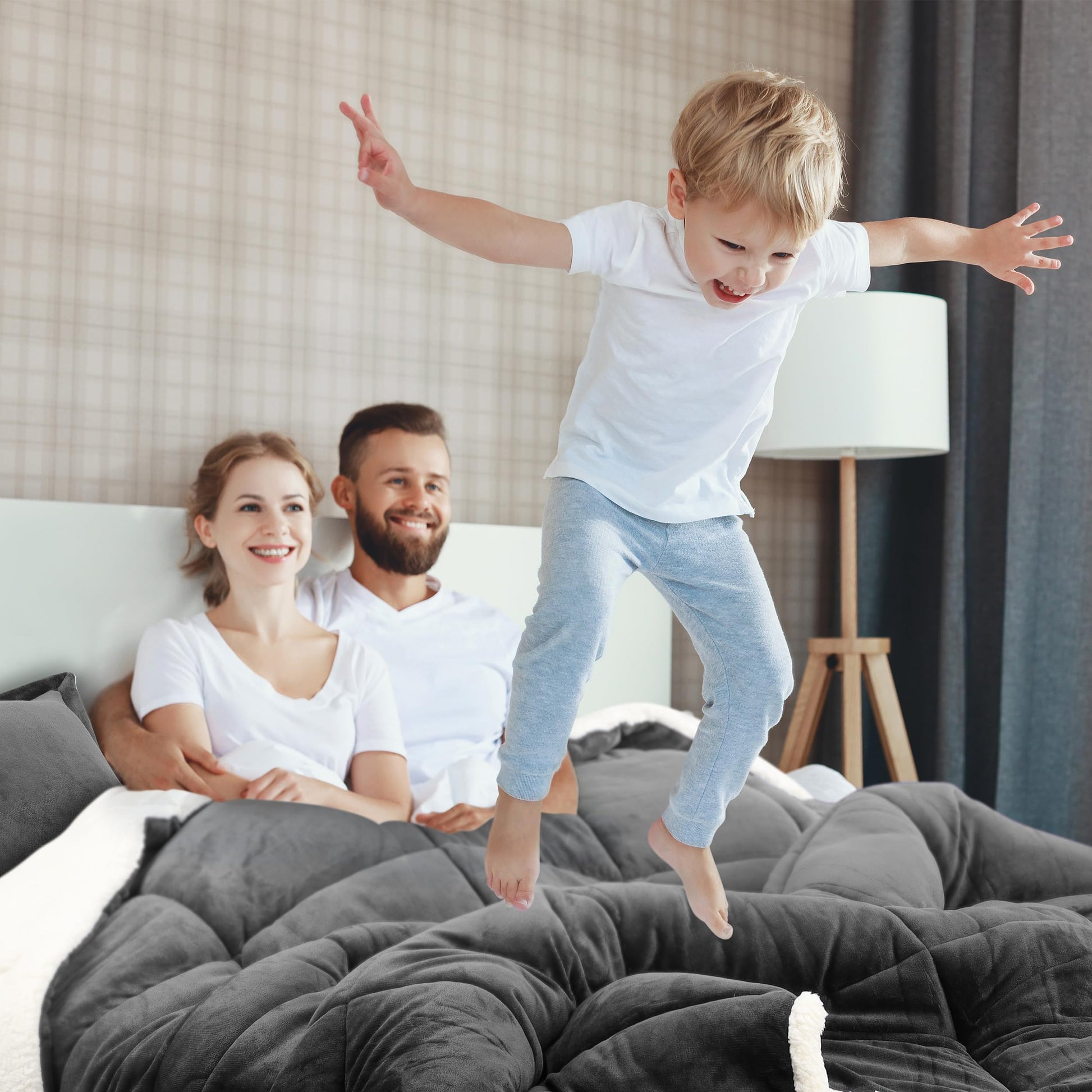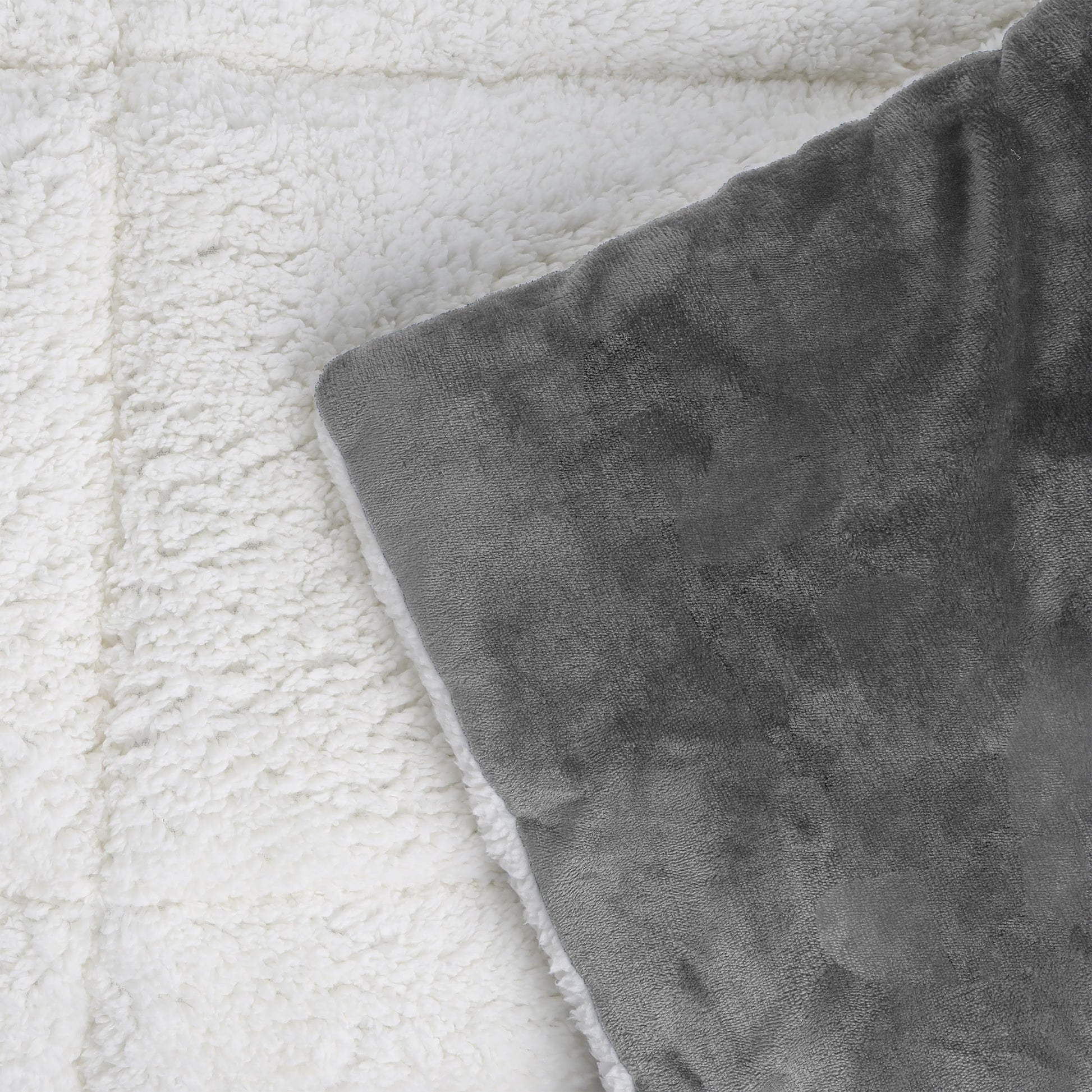 - REVERSIBLE DESIGN: The front side features ultra-soft microfiber, While the reverse side boasts a cloud-like white faux Sherpa fleece. Enhanced with box stitching for reinforced durability, designed to prevent filling from shifting.