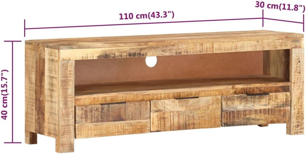 - Material: Rough mango wood with a natural finish. Dimensions: 43.3" x 11.8" x 15.7" (W x D x H). Compartment Dimensions: 41.7" x 11" x 4.7" (W x D x H). Drawer Dimensions: 11.4" x 8.3" x 3.7" (W x D x H). Assembly required: Yes.