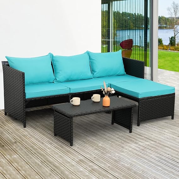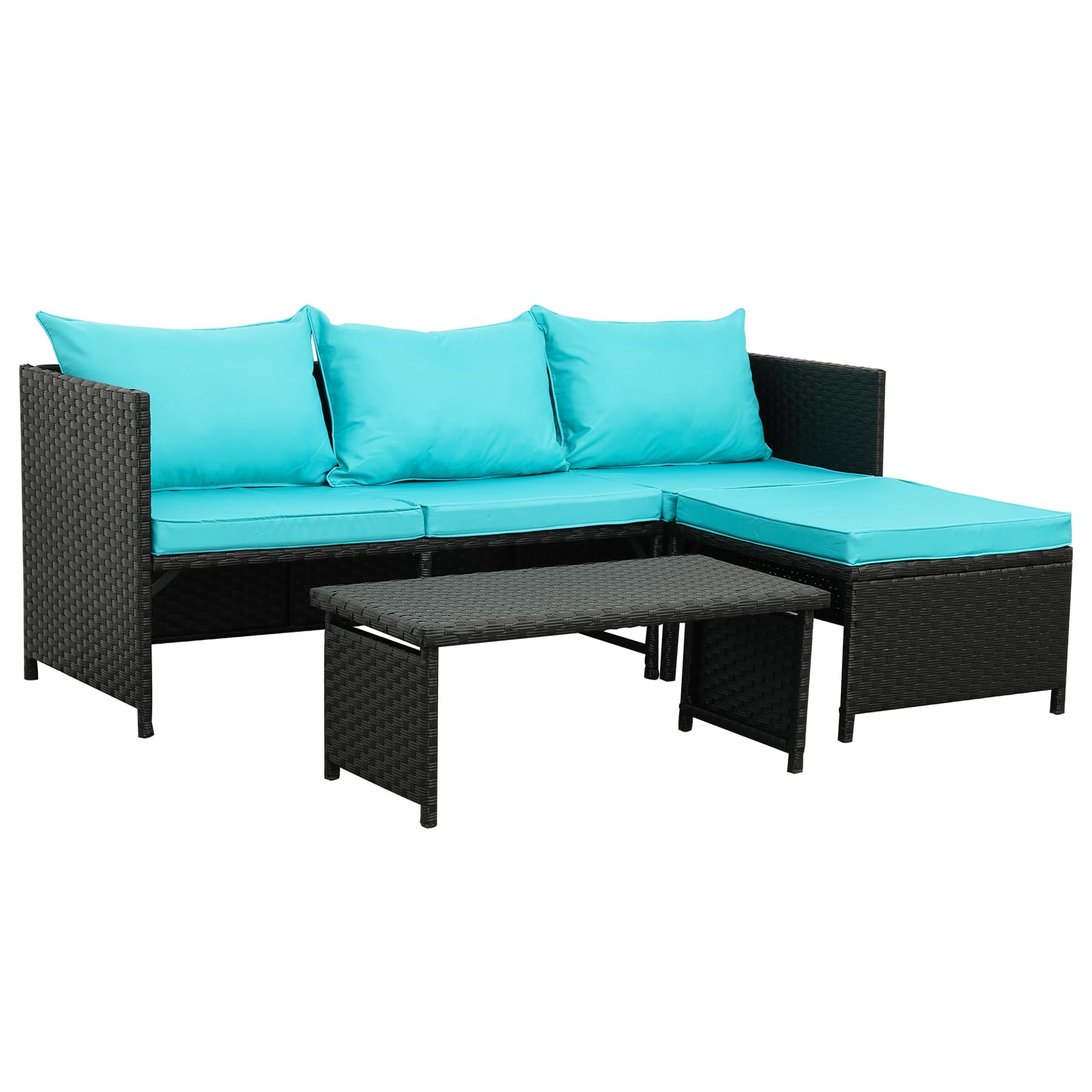 - SET INCLUDES: This wicker furniture set comes with one box, which includes 1 loveseat, 1 lounge sofa with cushions, and 1 table; Loveseat:47"L x 23"W x 26"H; Lounge sofa:47"L x 23"W x 26"H; Table:34"L x 16 "W x 14 "H.