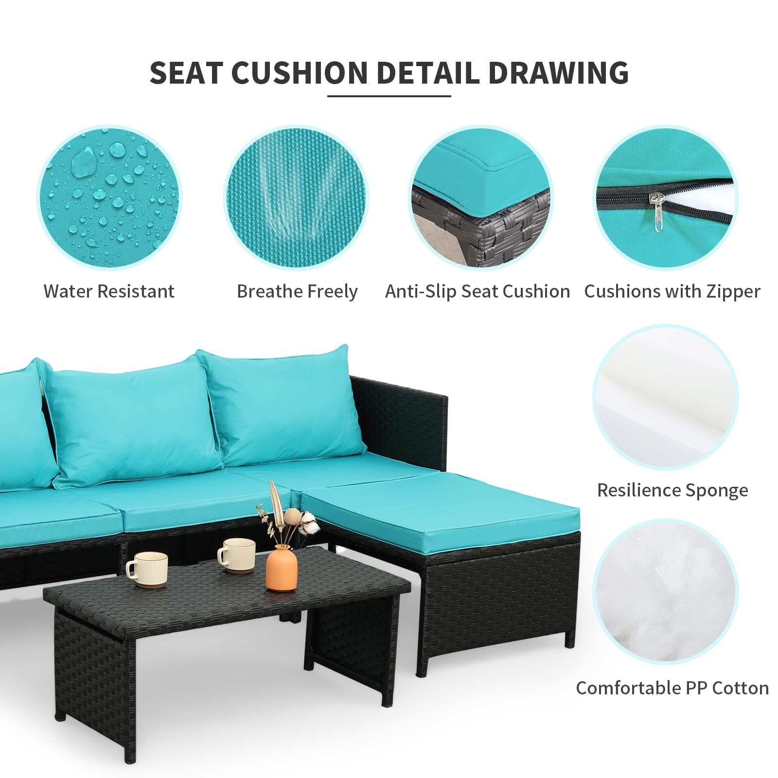- ANTI-SLIP CUSHIONS: The newly upgraded Anti-slip seat cushion will prevent the cushion from sliding and increasing, breathable cushion cover with zipper is 250G polyester water repellent, UV-resistant, easy to remove/replace, and washable.
