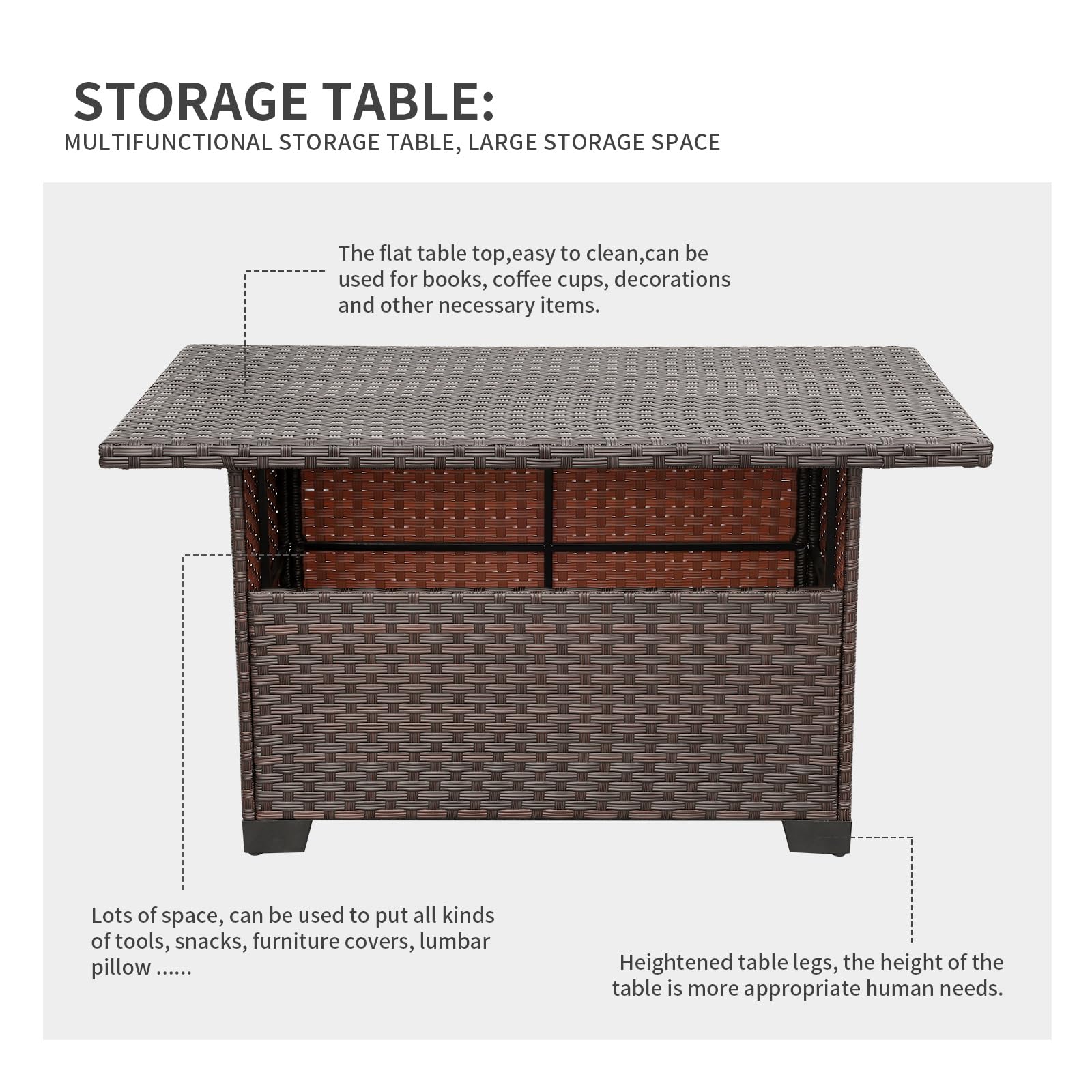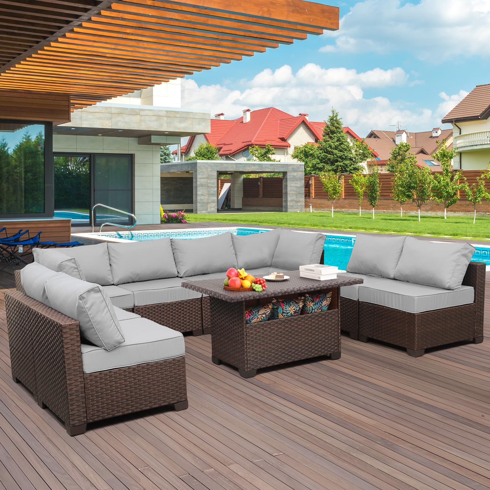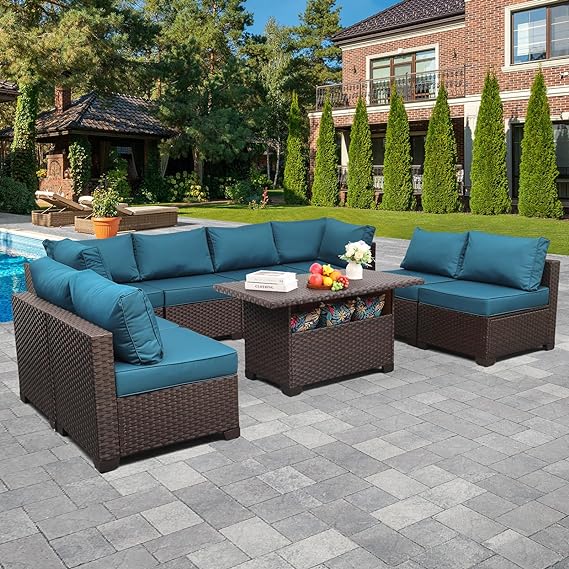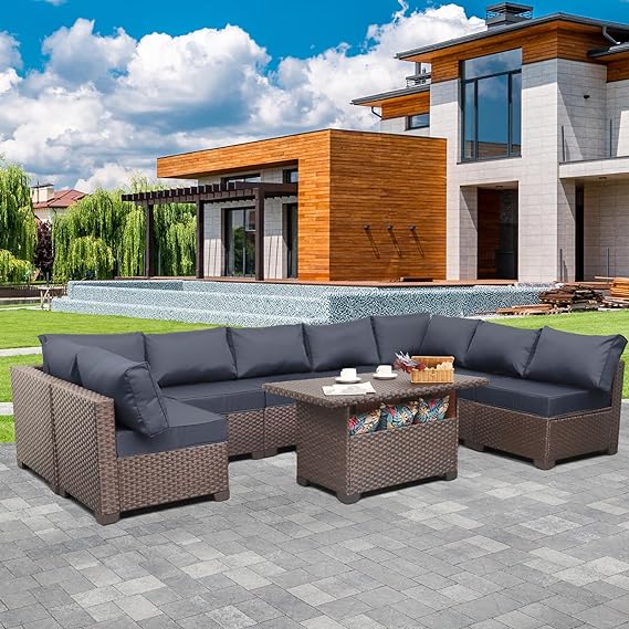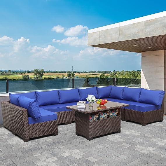 9-Piece Patio Rattan Furniture Set with Storage Table Outdoor Sectional Conversation