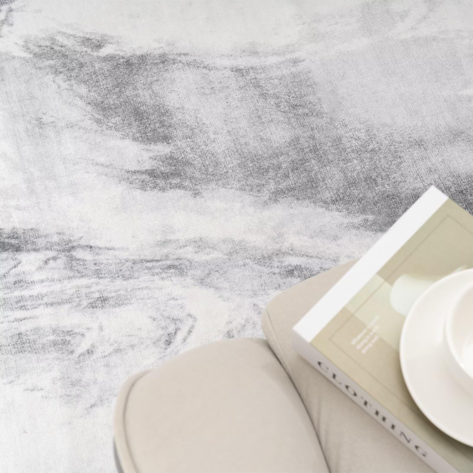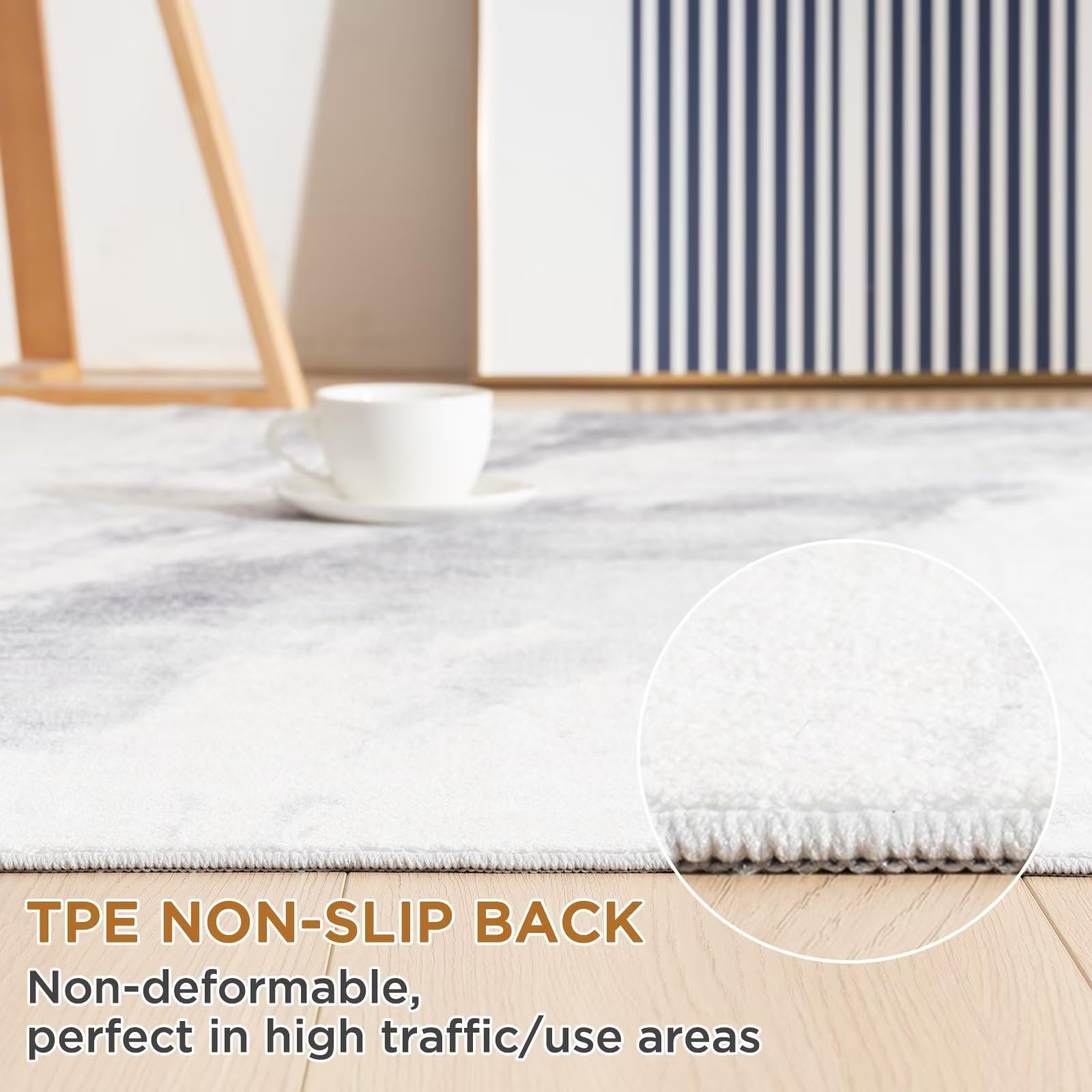 Vamcheer Washable Abstract Area Rug - Contemporary Style for Living Room, Bedroom, Kitchen - Machine Washable Rug for Living Room - Non-Shedding and Easy-Cleaning - Grey-White 6x9 ft