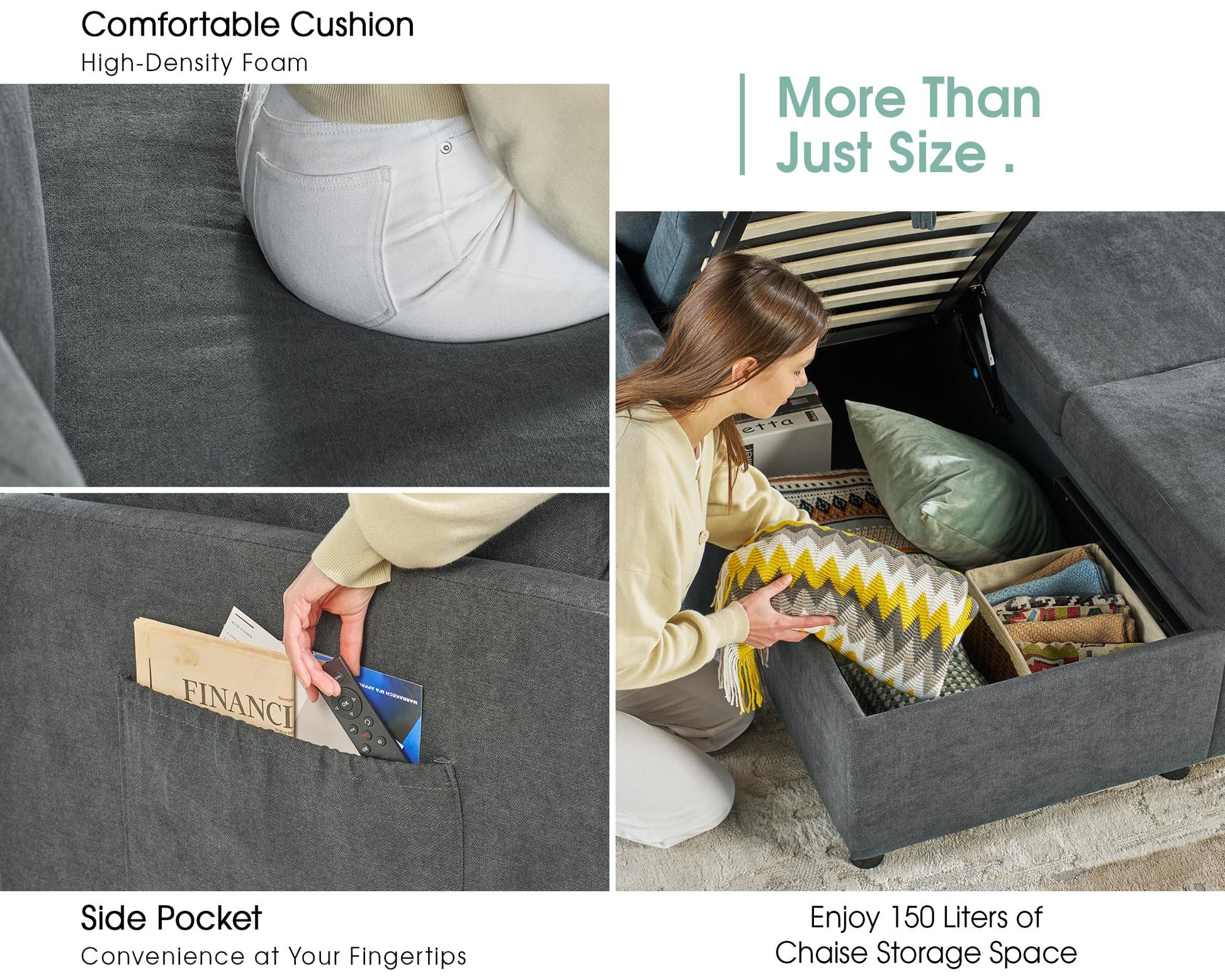 - Large Storage Chaise: Built-in storage is easy to access and spacious enough to store blankets, pillows or anything you want, save your space and enjoy a cozy sleep at your fingertips with sofa bed.