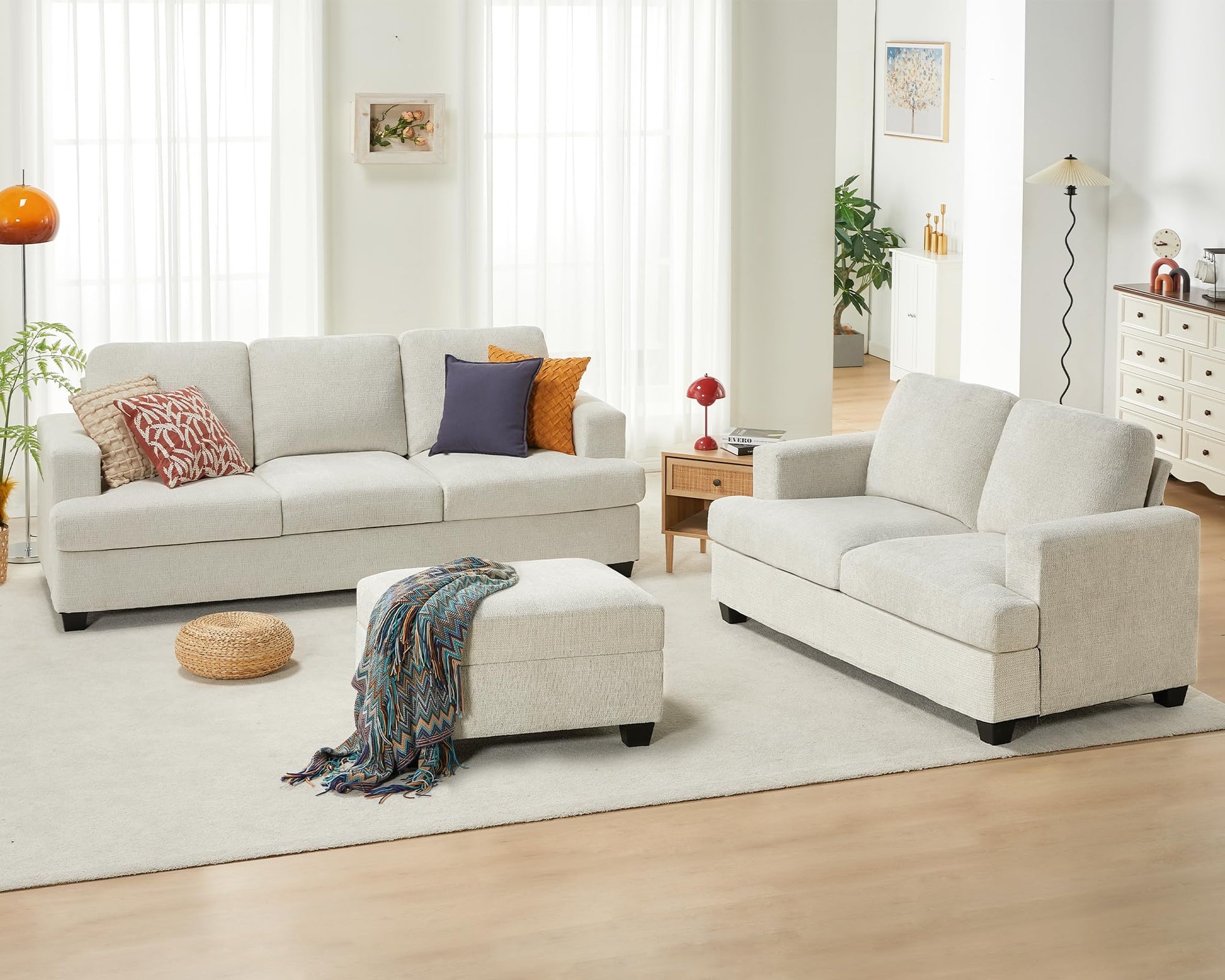 - Upholstered in durable chenille fabric, creamy couch offers a soft touch while providing a fuzzy texture. Chenille fabric decorates your home with warmth and calmness.