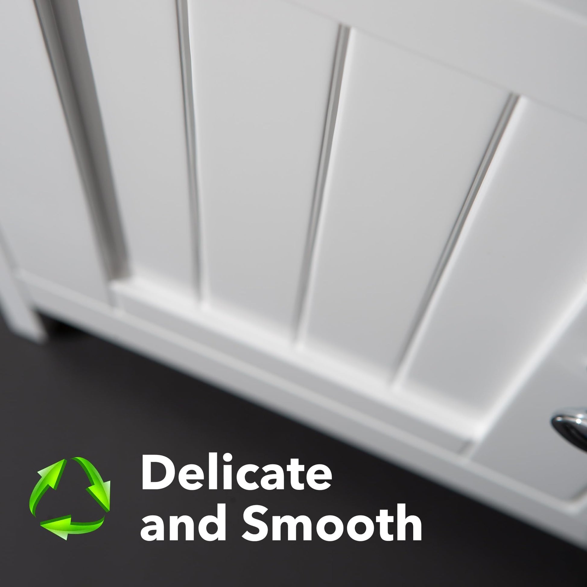 - The thickness of this kitchen storage cabinet is about 0.6 inches, which is much stronger than other brands.And the item frame made of FSC-Certified wood. This white floor cabinet uses DTC hinges,which has passed more than 50,000 twisting tests and anti-corrosion tests,it is not only durable, but also has an excellent cushioning effect when closing the door. The surface of the laundry room cabinets is entirely made of advanced paint technology, which is scratch-proof, waterproof and moisture-proof.This floor bathroom cabinet's durable coating is not only smooth but also environmentally friendly.