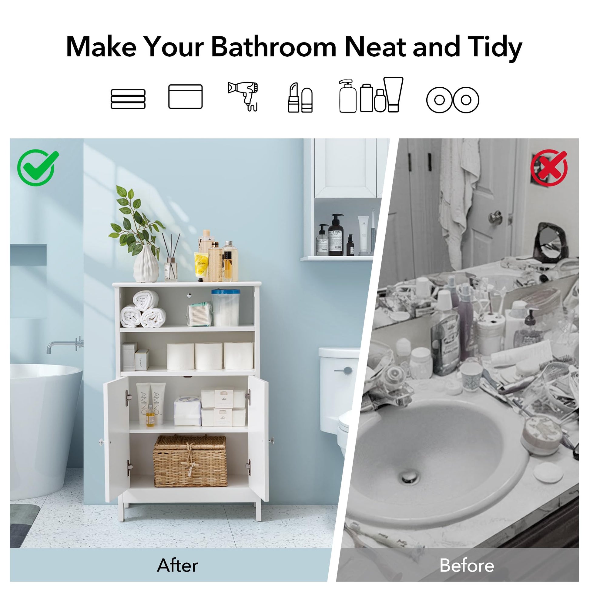 - The instructions are detailed, and each panel and small part of the bathroom cabinets freestanding is numbered for clear identification, ensuring that you can assemble this storage cabinet with doors and shelves quickly and easily. We will have staff online 24 hours a day to serve you. If you have any questions about this item, please contact us.