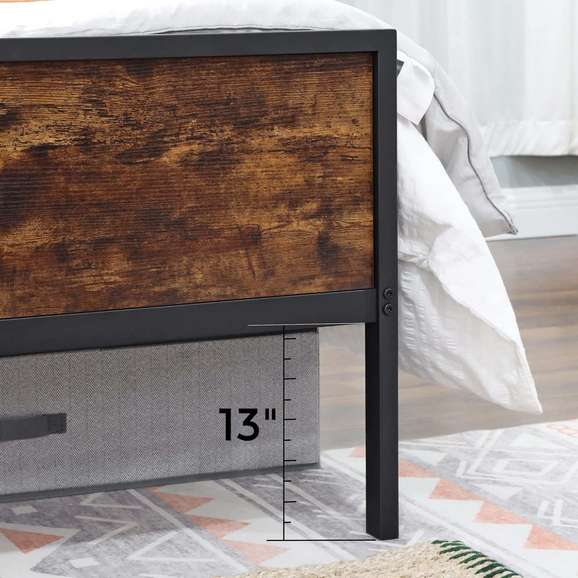 - Long-Lasting Happiness: Worth relying on, this heavy-duty platform bed is supported by a steel frame, reinforced by 9 metal legs, embellished by durable engineered wood panels, and strengthened by metal bars; this team jointly supports up to 529.1 lb.Modern-Industrial-Lover, Rejoice! The perfect mix of rustic romance and matte metal charm adds to its fineness and is sure to infuse vintage and industrial charm into your bedroom; modern minimalist spaces? No problem!