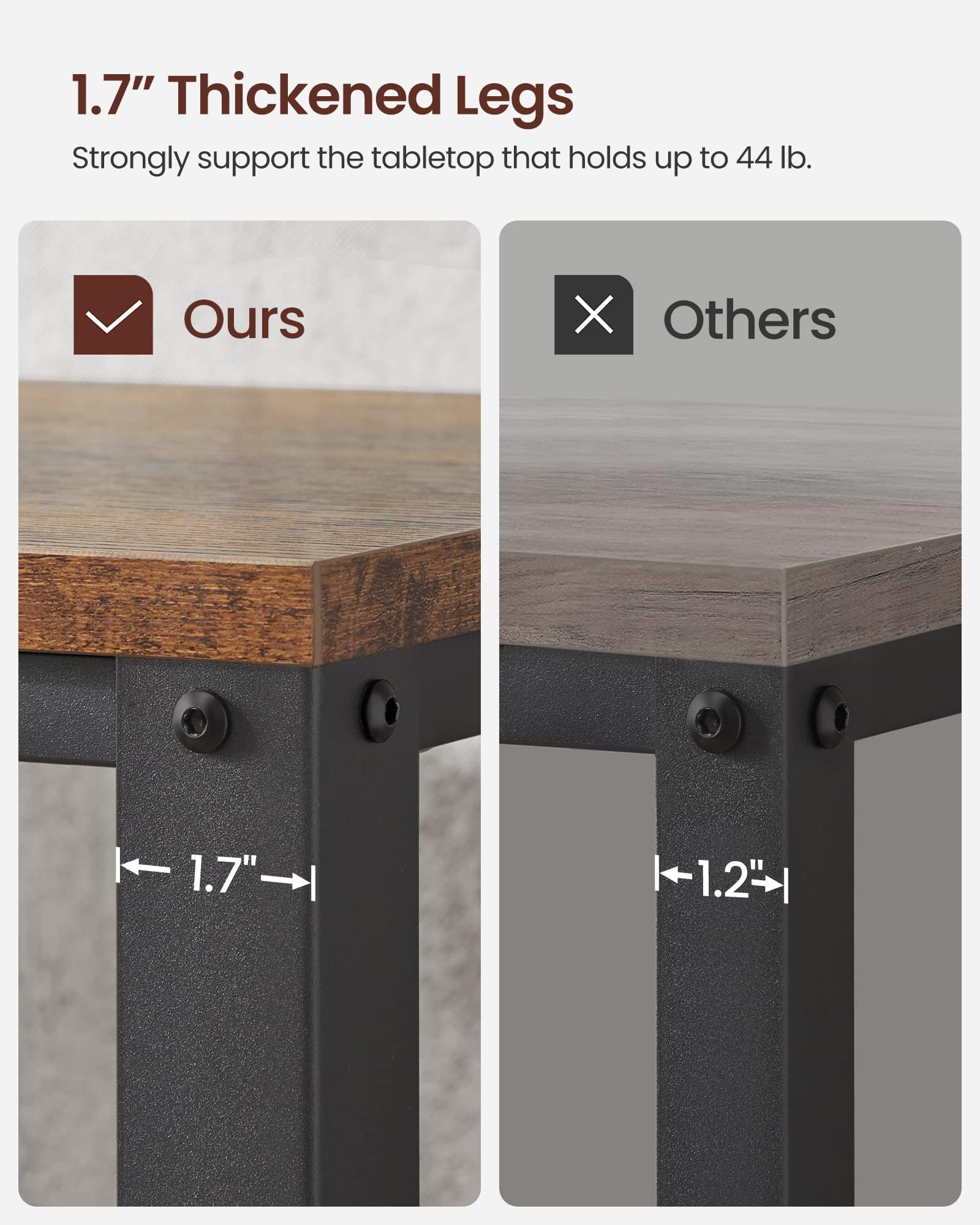 - High-quality particleboard, solid steel frame, 1.7 inches wide leg tubes (sturdier than the 1.2 inches or 1.4 inches wide leg tubes of most tables)—this table gives your items strong support (up to 44 lb on the tabletop, 33 lb on the mesh shelf)