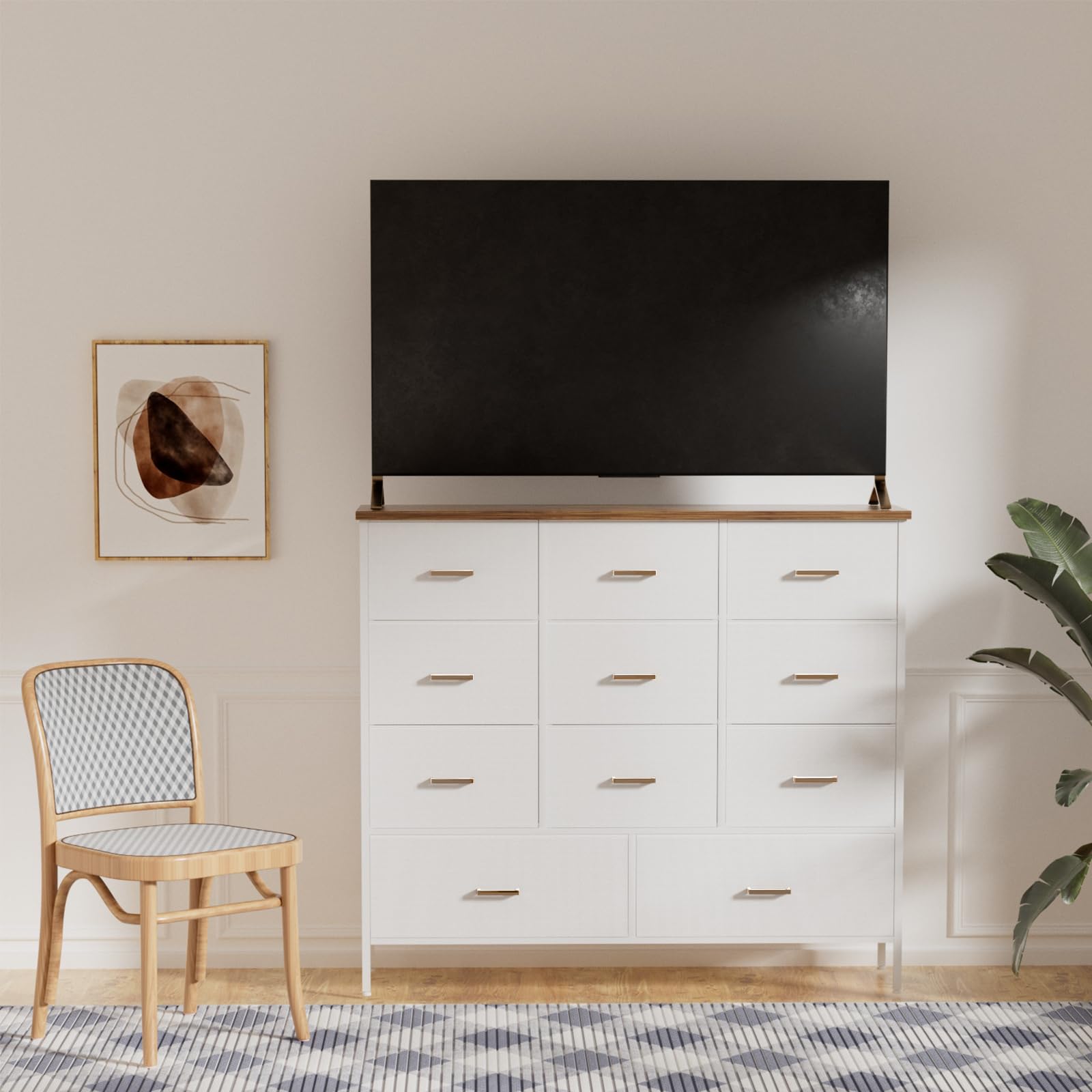 Wide TV Stand Modern TV Console, 11 Drawers Tall Dresser for Bedroom, Fabric Storage