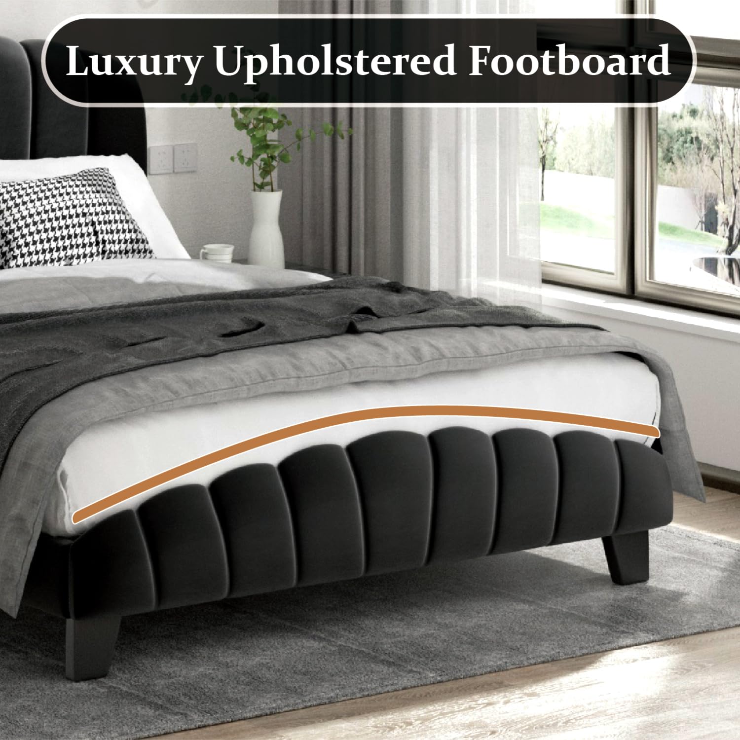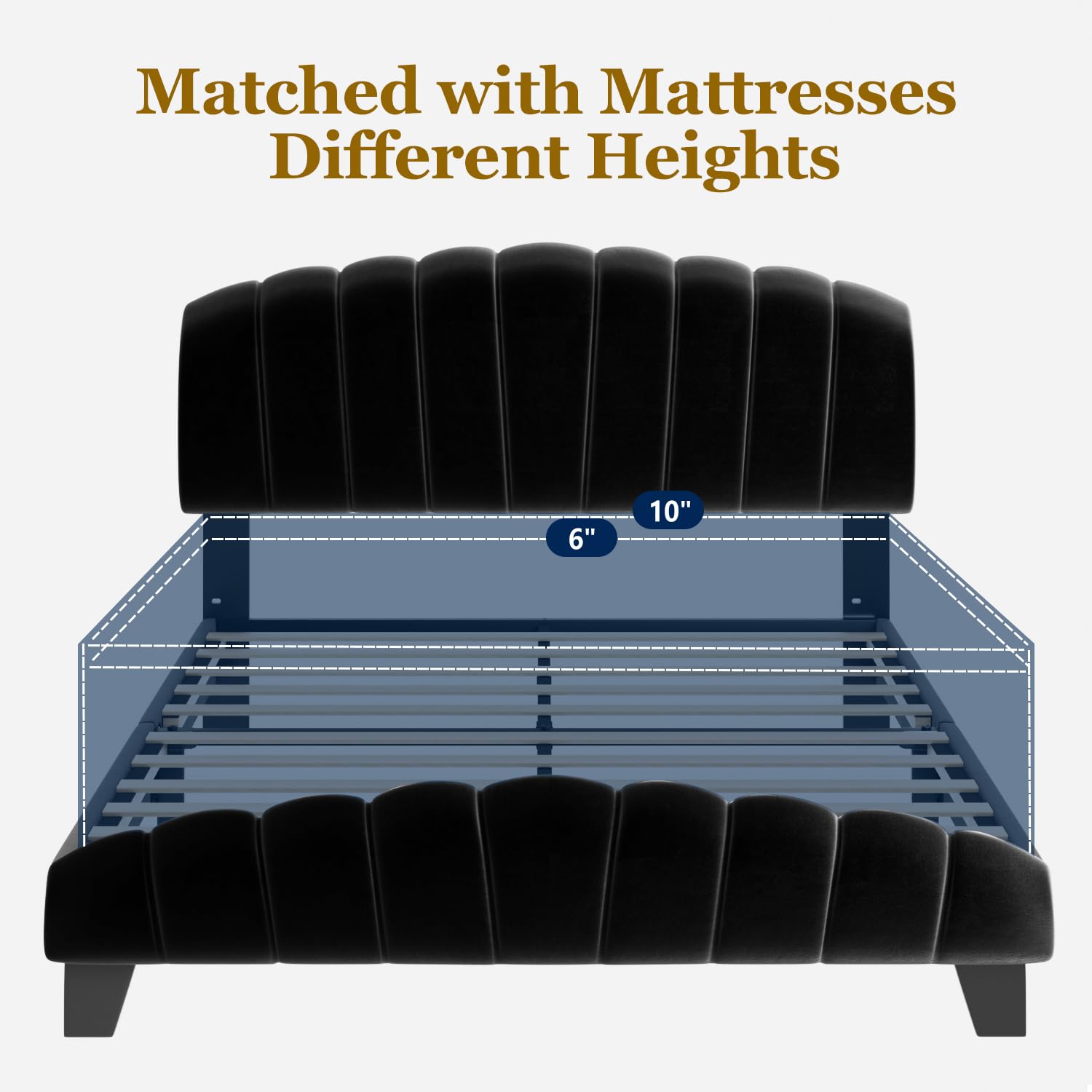 - Featuring a stylish seashell-inspired design with luxurious velvet fabric and filled with a high elastic sponge, this headboard not only protects you from collisions but also provides a comfortable cushioned backrest for reading or watching TV. The raised footboard design effectively secures the mattress, preventing it from sliding.