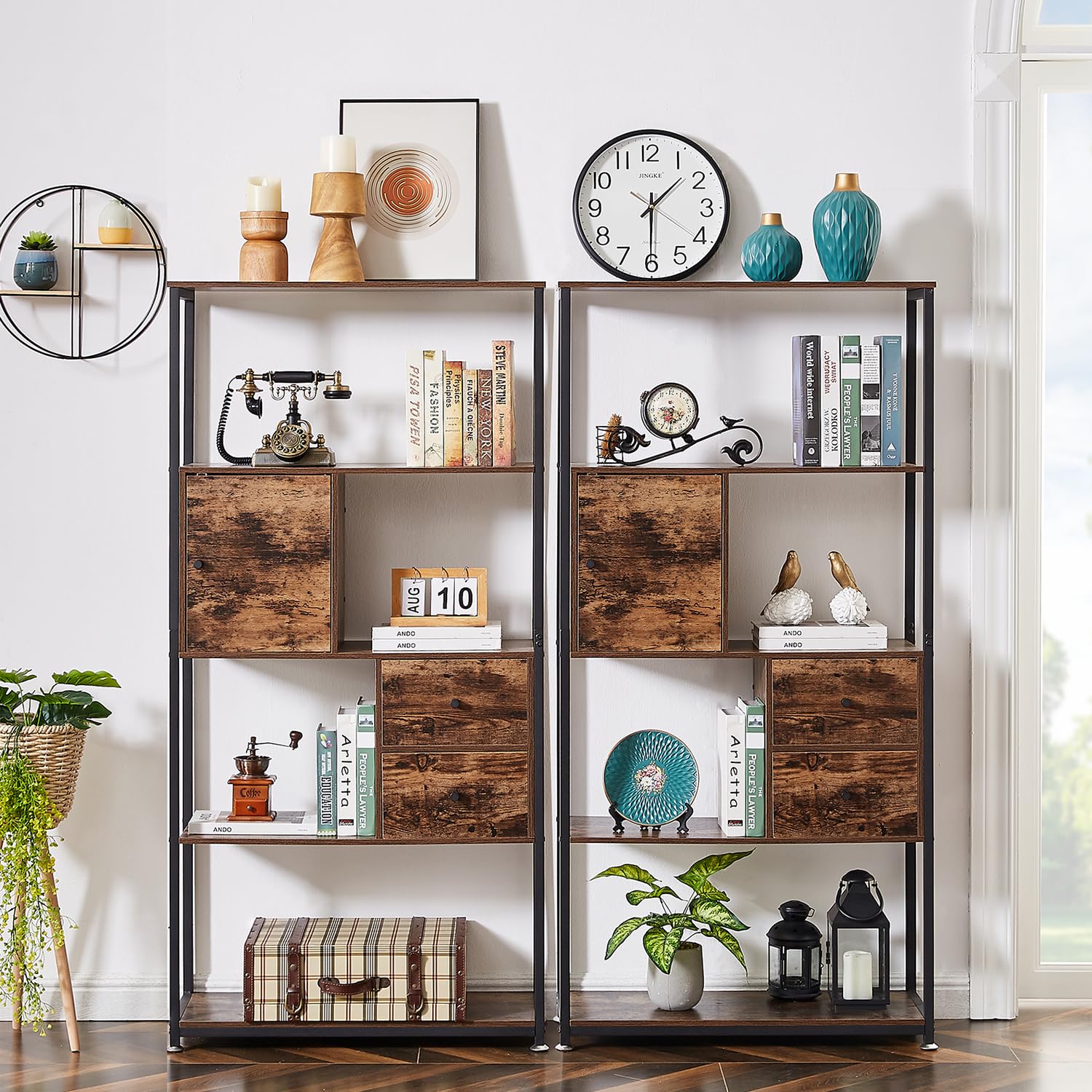 Bookshelf,4-Tier Book Shelves with 2 Storage Drawers and 1 Cabinet, Metal Frame Open BookcaseStanding Shelf Unit for Living Room, Home Office