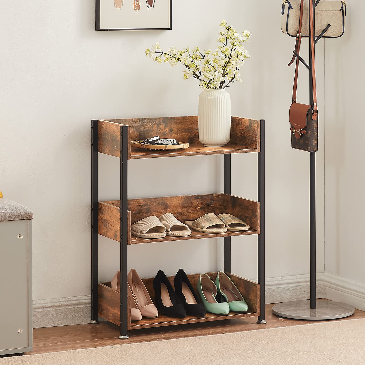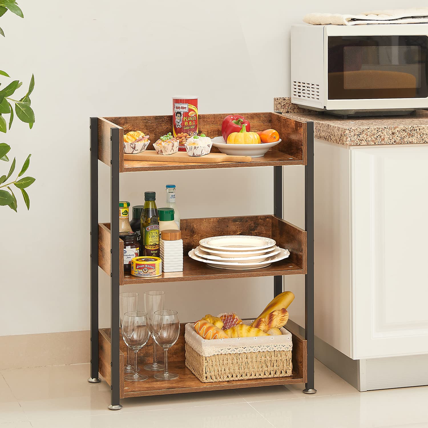 VECELO Bookshelf,Small Bookcase,3-Tier Storage Shelves,Industrial Shelving Unit for Living Room,Bedroom,Classroom,Antique Brown