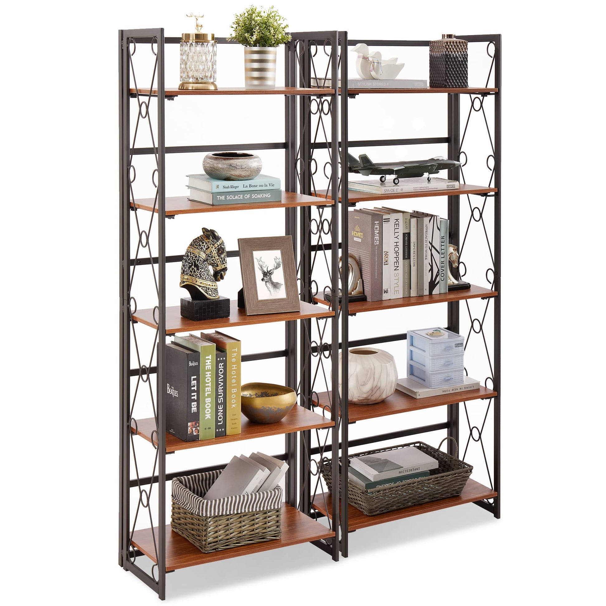 Folding Bookshelf,5 Tier Bookcase Foldable Easy Assembly, Industrial Book Shelf Storage Organizer with X Metal Frame and Anti-Toppling Design,