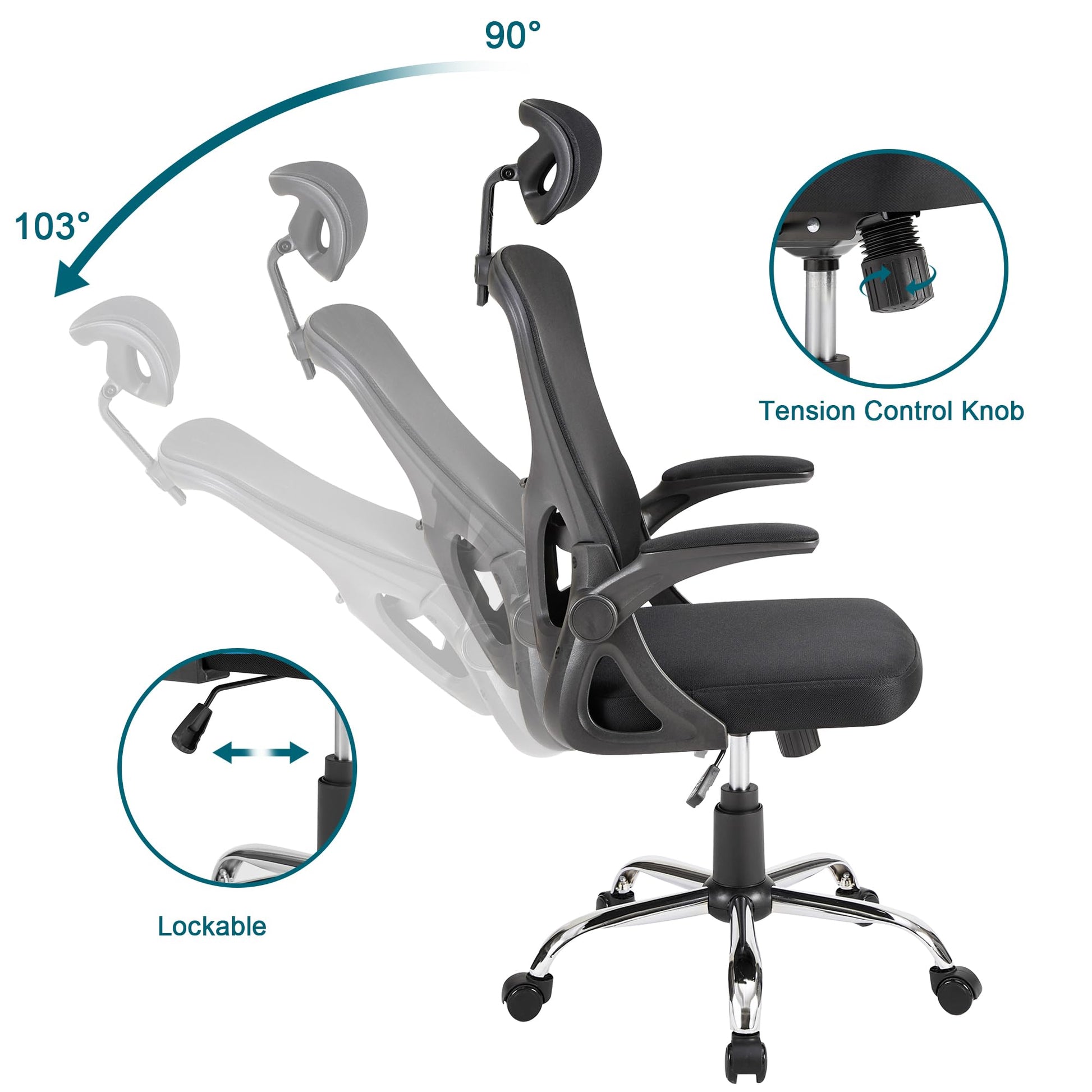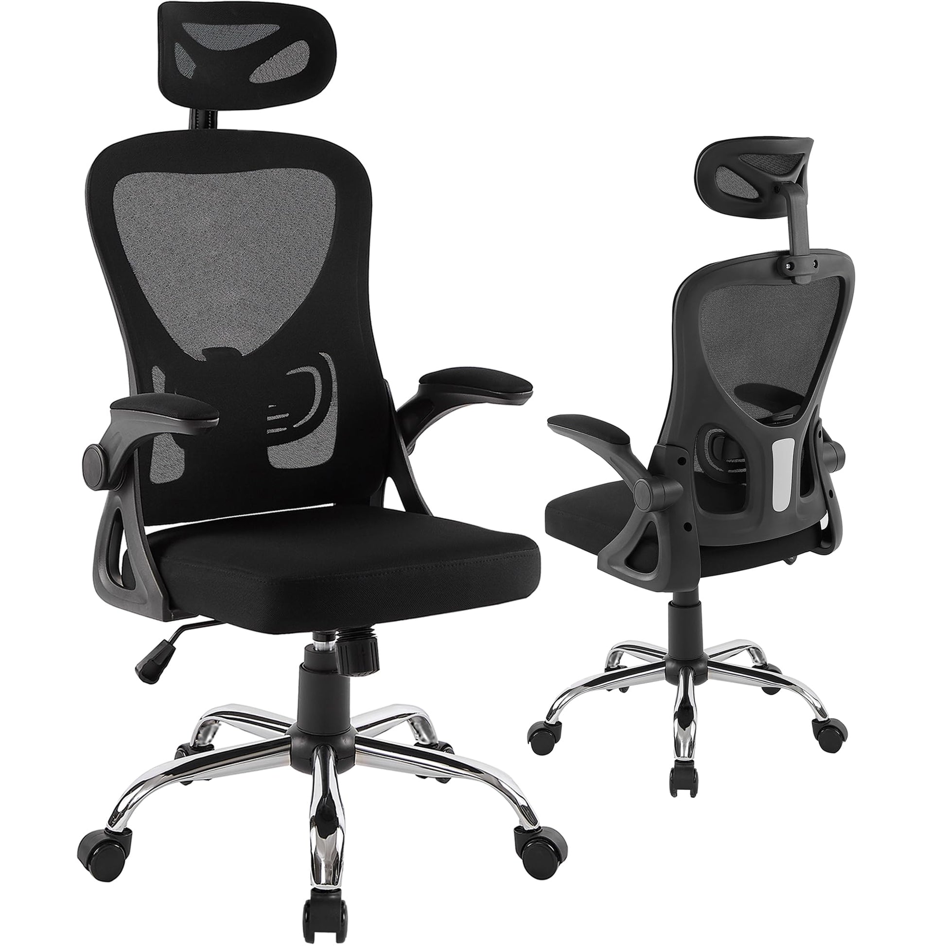 - Our mesh office chair high back provides adjustable height, headrest, and flip-up armrests. The adjustable backrest inclination of office computer chair ensures optimal back support. Customize your comfort with an adjustable range of 100° to 125° for this task office chair. The office chairs for back support smoothly slides beneath the desk to save space.