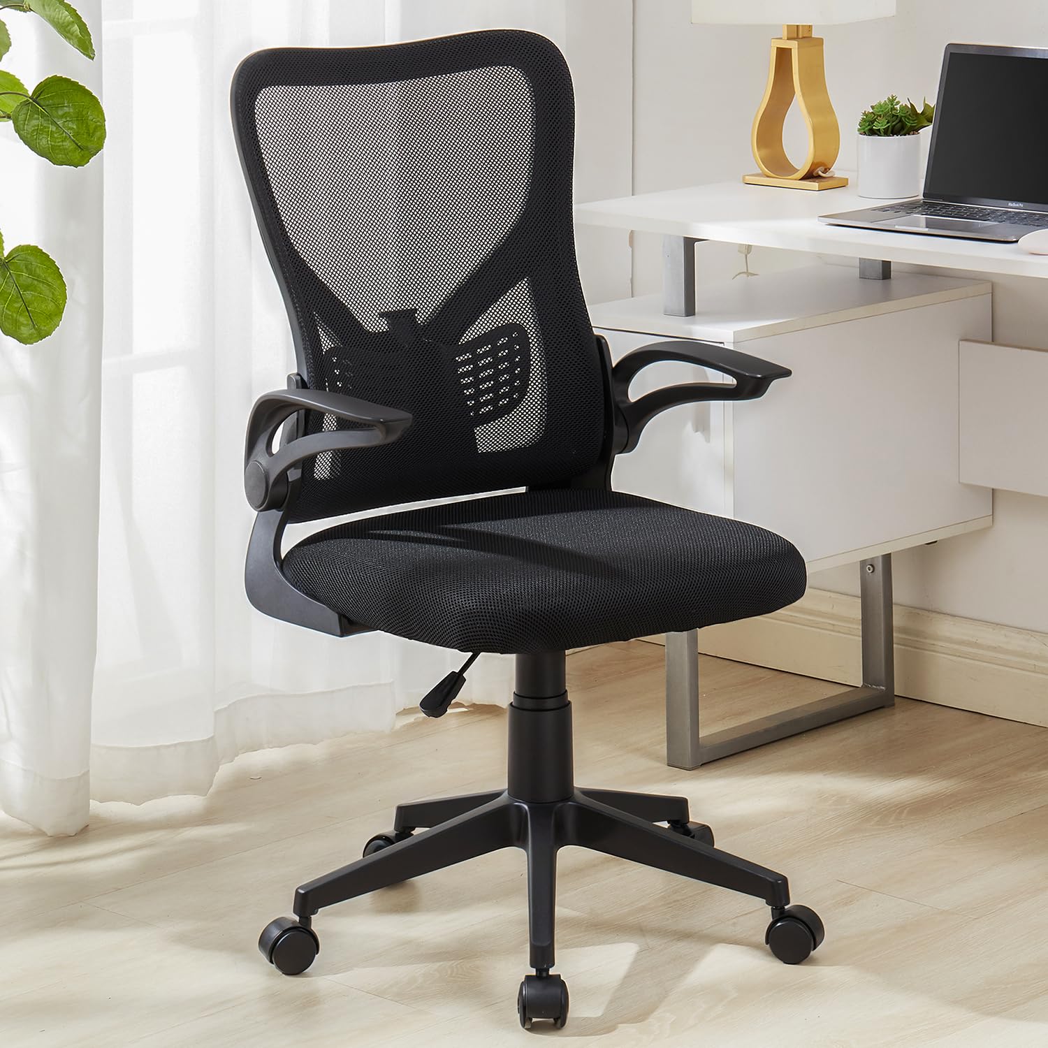 Mid-Back Mesh Ergonomic Office Chair with Flim-up Armrests, Breathable Lumbar