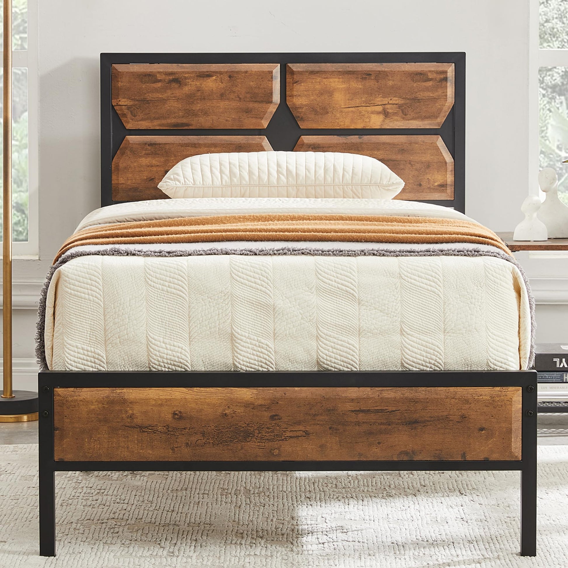 - Unique design This twin bed frame has a wooden grain headboard and footboard in rustic industrial style. The linear three-dimensional patchwork design of Craft adds an elegant element to your life. Ideal for the living room, dormitory, guest and so on.