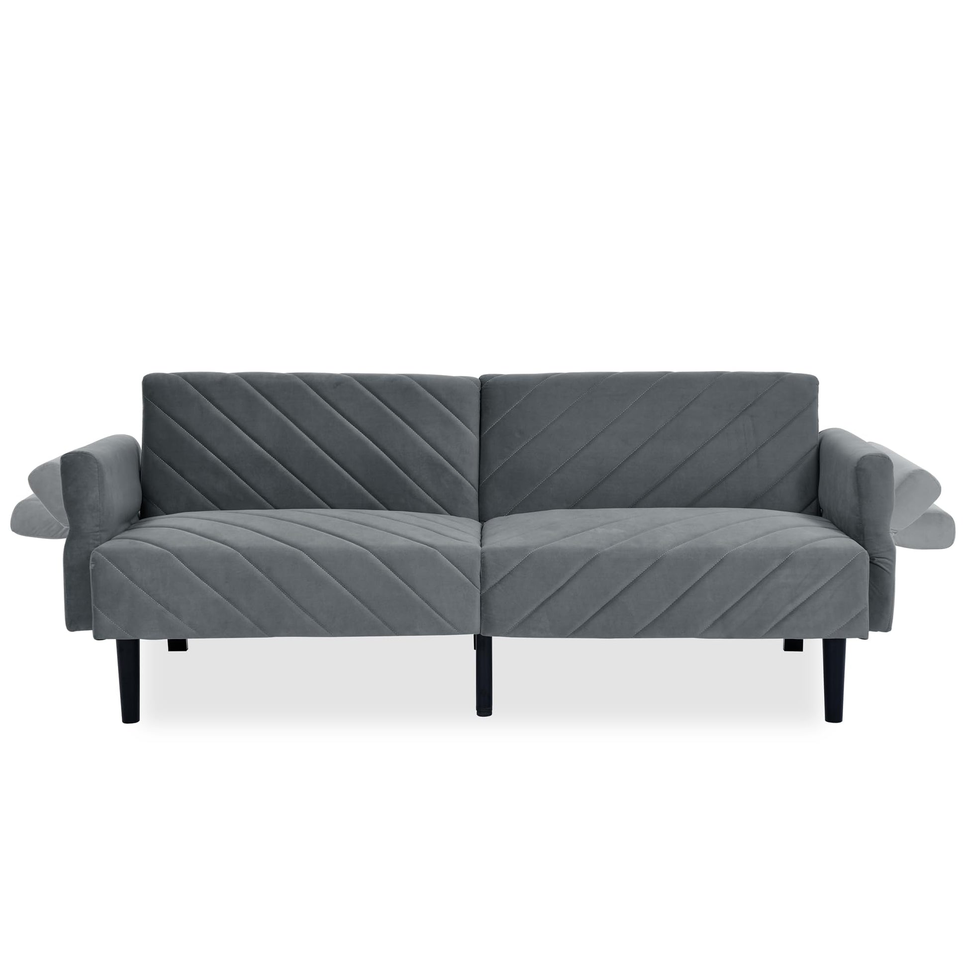 Velvet Futon Sofa Bed Couch, Convertible Sleeper Sofa with Adjustable Armrests and Backrest,