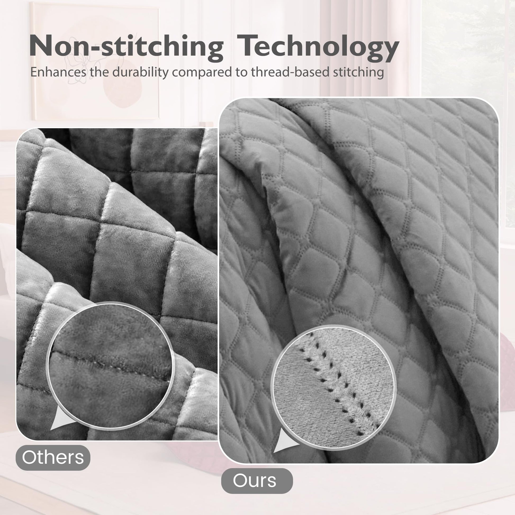3D Velvet Quilt Set Queen Size - Elegant Coverlet with Pillow Shams