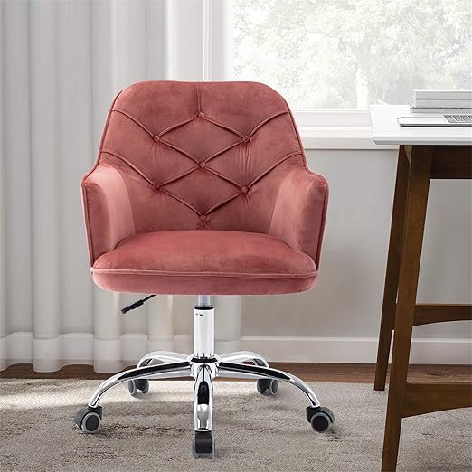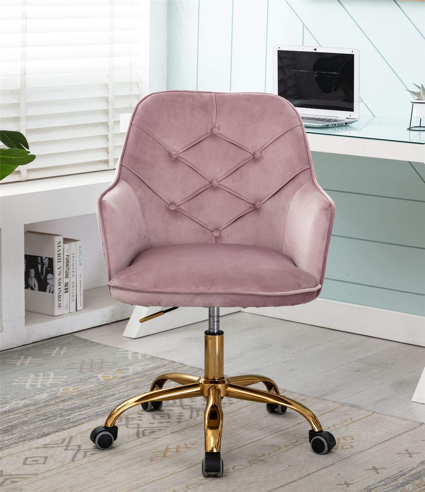 Velvet Swivel Chair, Mid-Century Leisure Arm Chair with Wheel Five Star Base