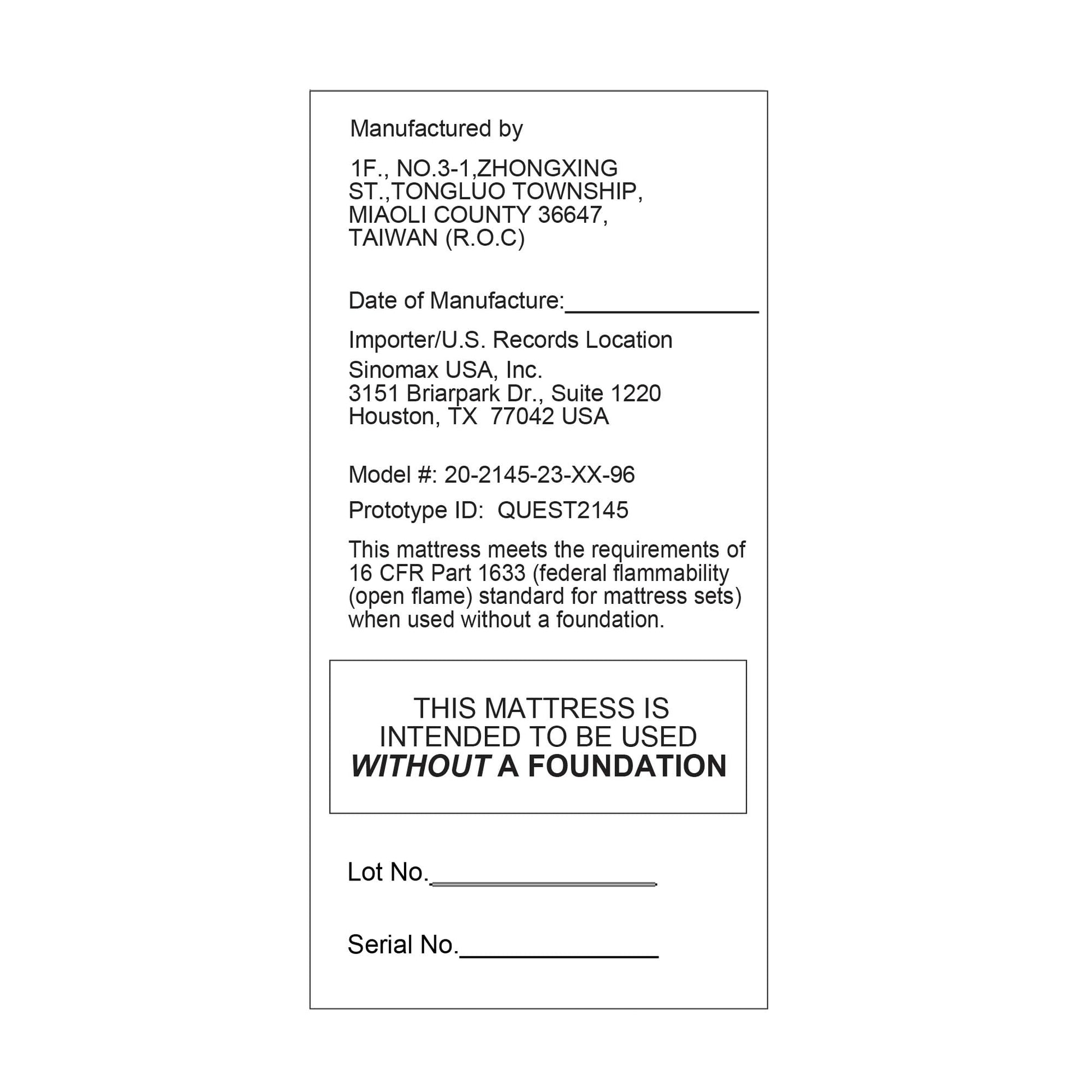| Product Dimensions | 80"L x 60"W x 12"Th |
