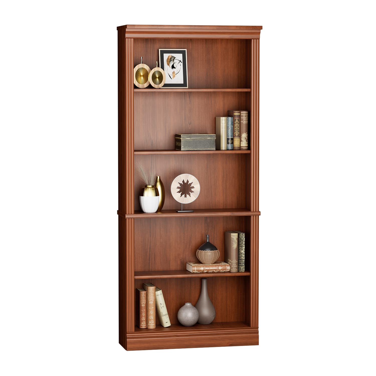 5-Shelf Bookcase, Wooden Standing Rack Book Storage Shelves Furniture Selection for Living Room, Bedroom, Home Office (Cherry)