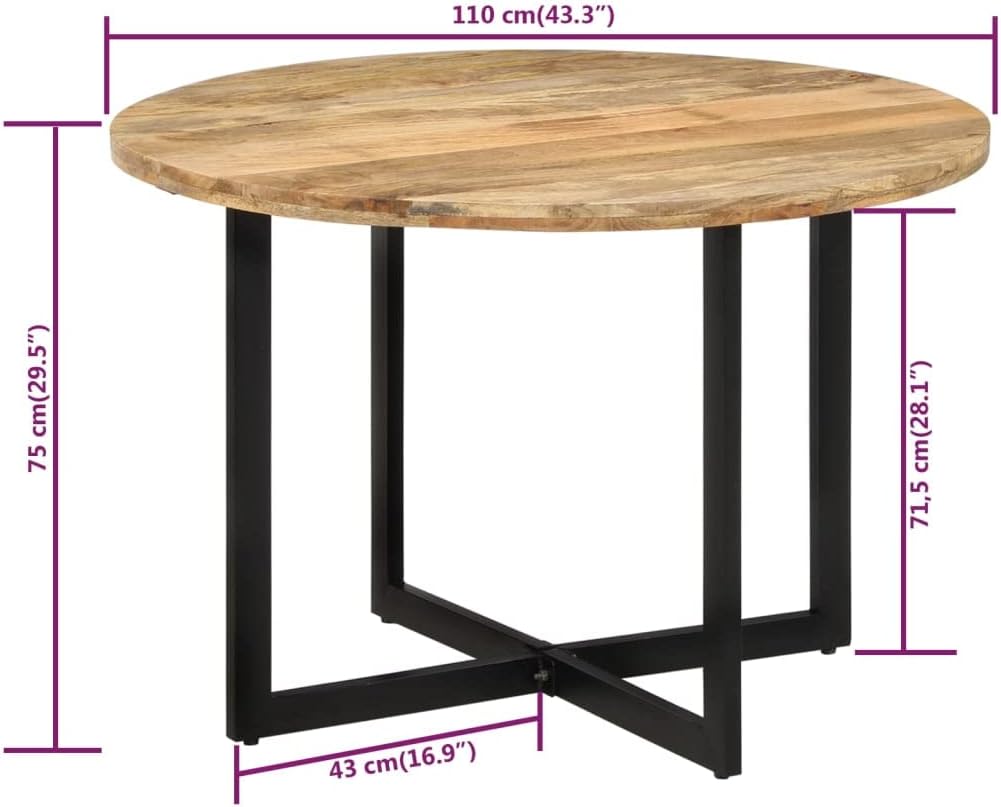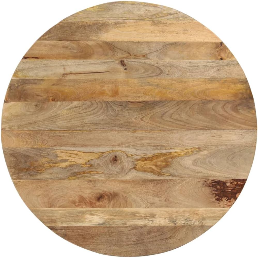 vidaXL Mango Wood Dining Table with Powder-Coated Iron Frame - Retro Style Versatile Dinner Table, 43.3" diameter
