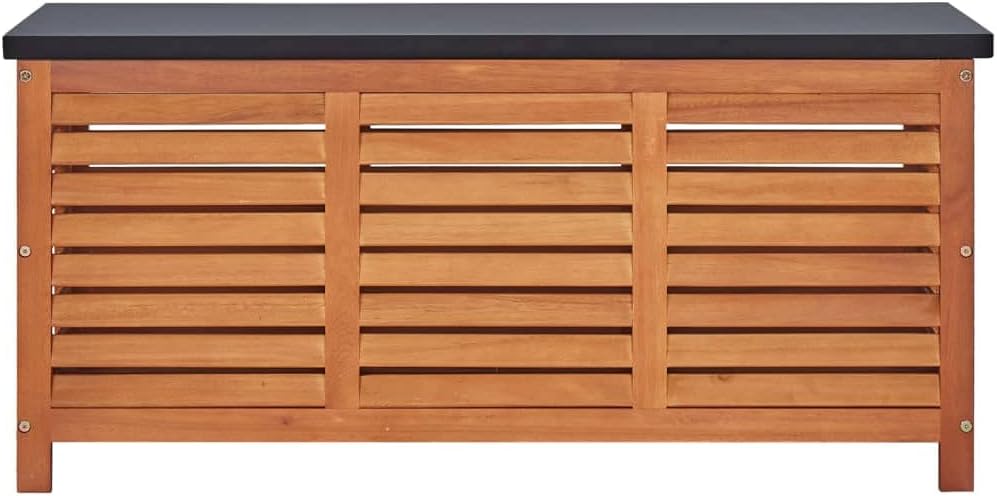 - This Rustic Solid Eucalyptus Garden Storage Box is both a handy storage solution and a lovely decorative piece for your outdoor areas. Made from solid eucalyptus wood with a protective oil finish, it keeps its good looks while providing a sturdy structure for everyday use in any environment. The sleek design and natural wood finish create an inviting feel, perfect for gardens, balconies, or entryways, making your outdoor space look tidy and welcoming.