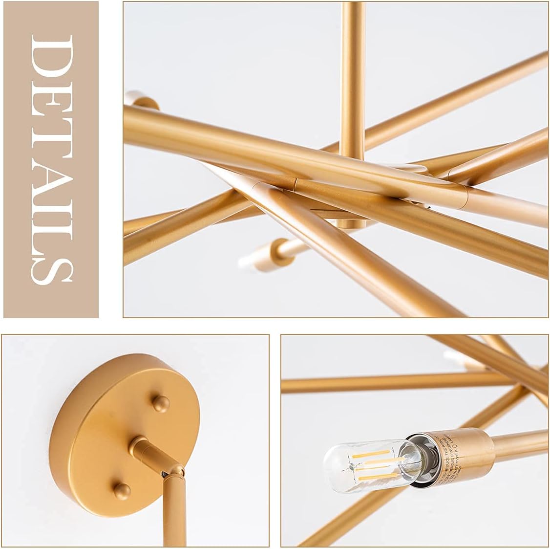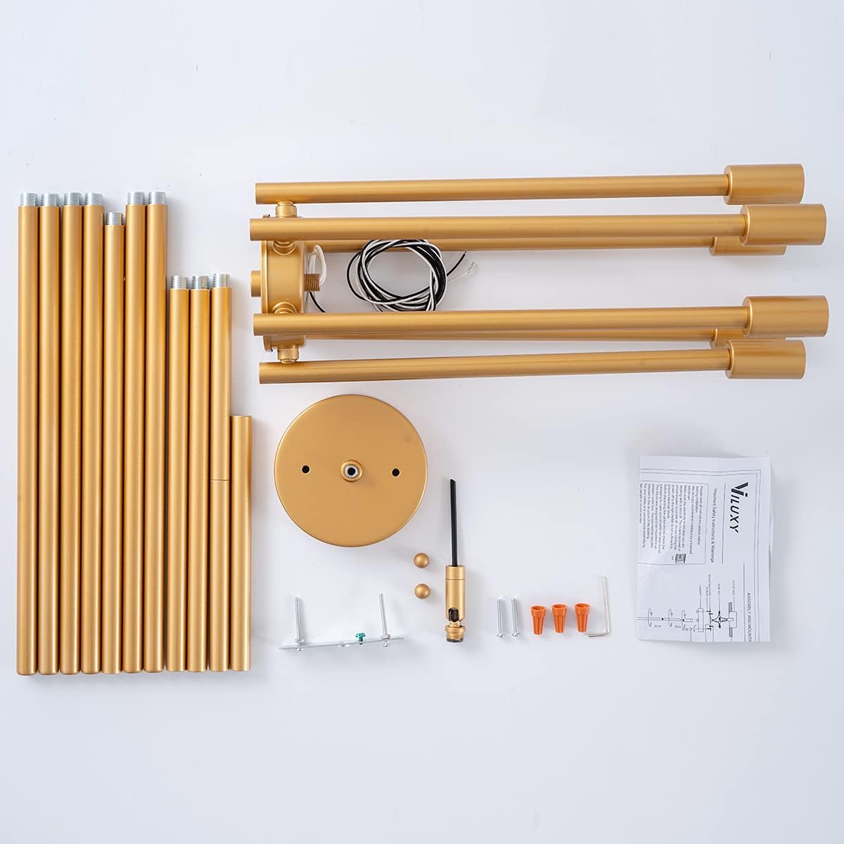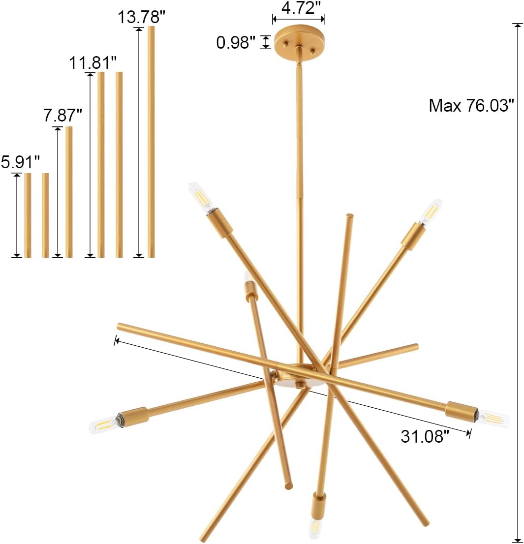 - Design: Mid-century modern 6 Light antique brass brush paint finish chandeliers with adjustable arms allowing you to customize the light look what you like. It can be bring a unique style to your home.