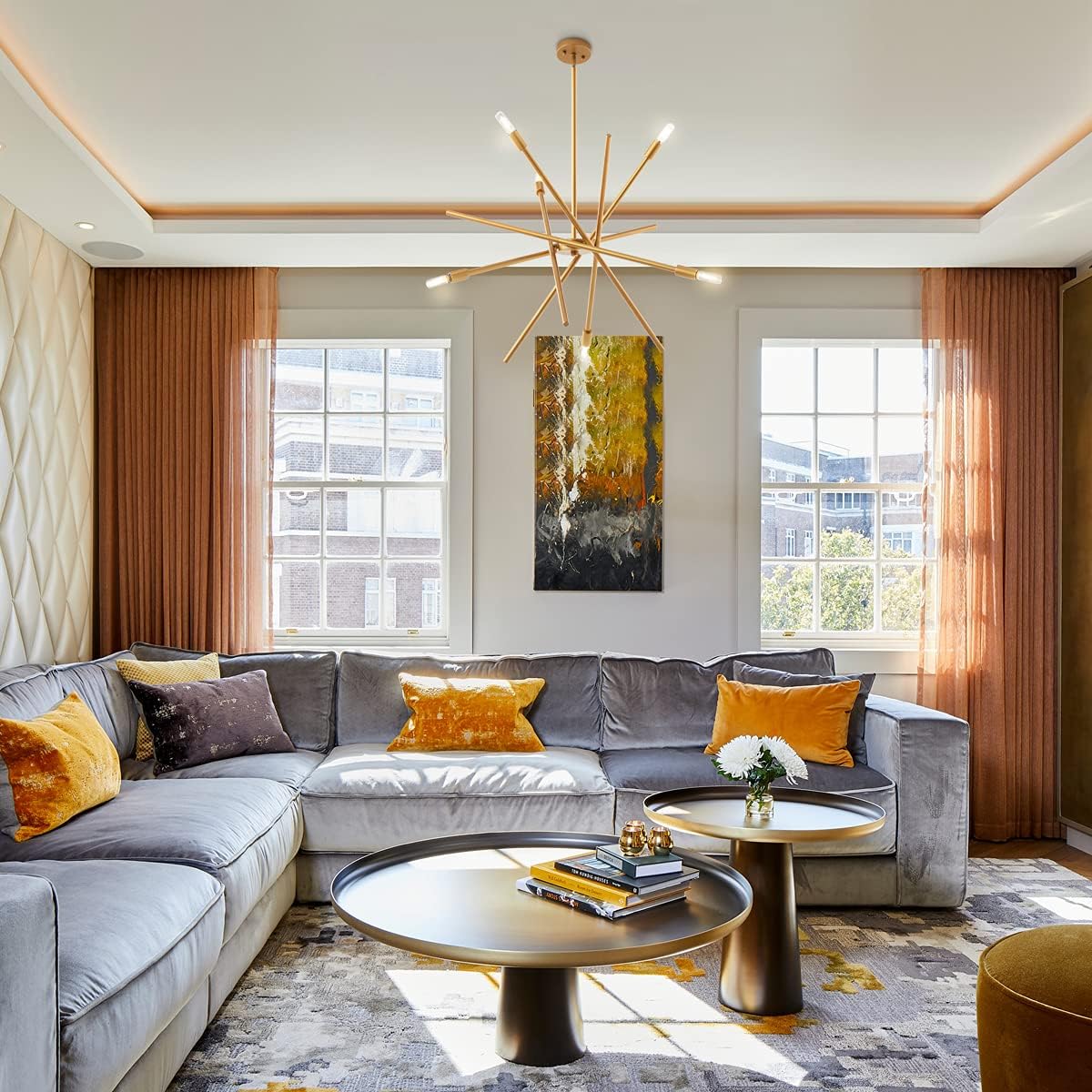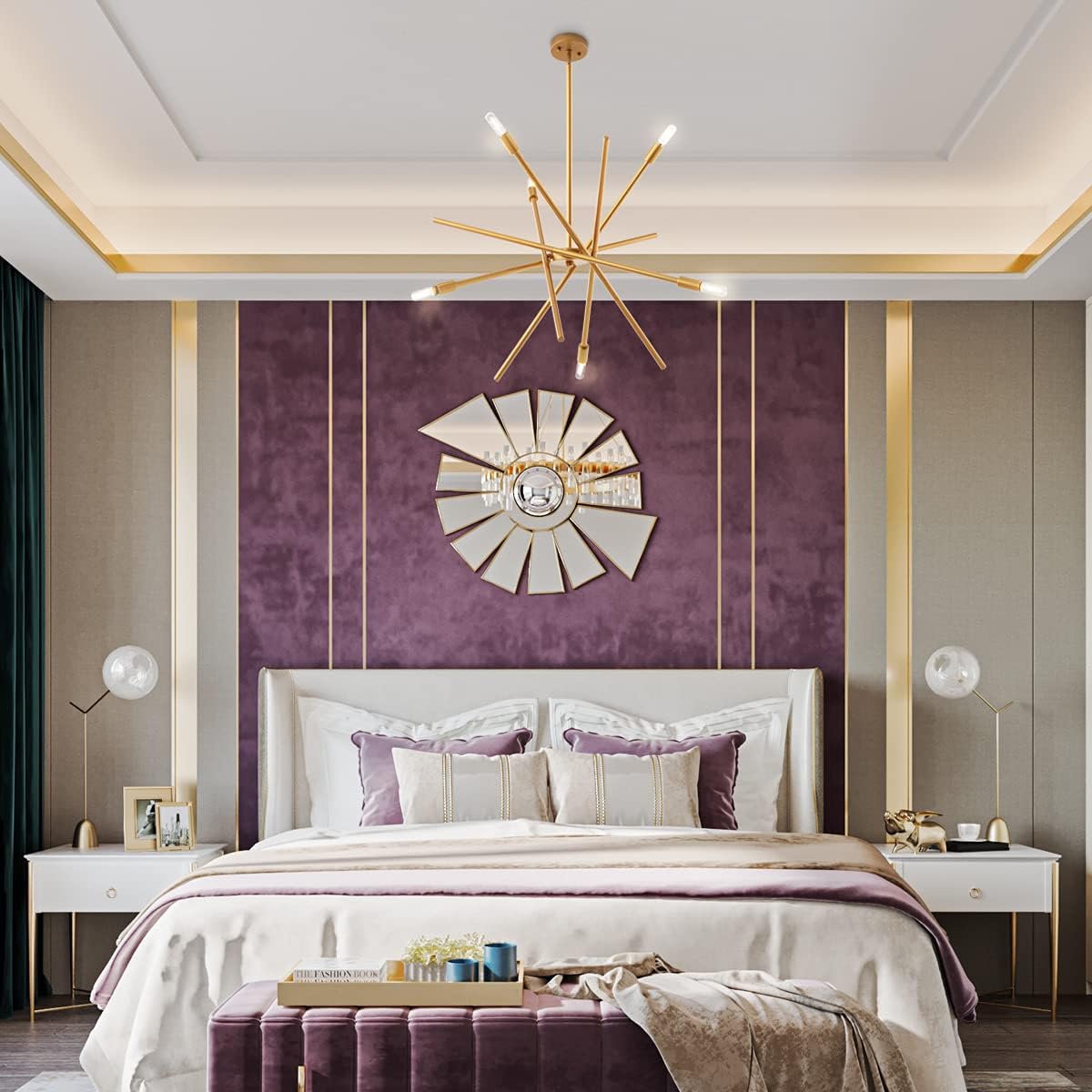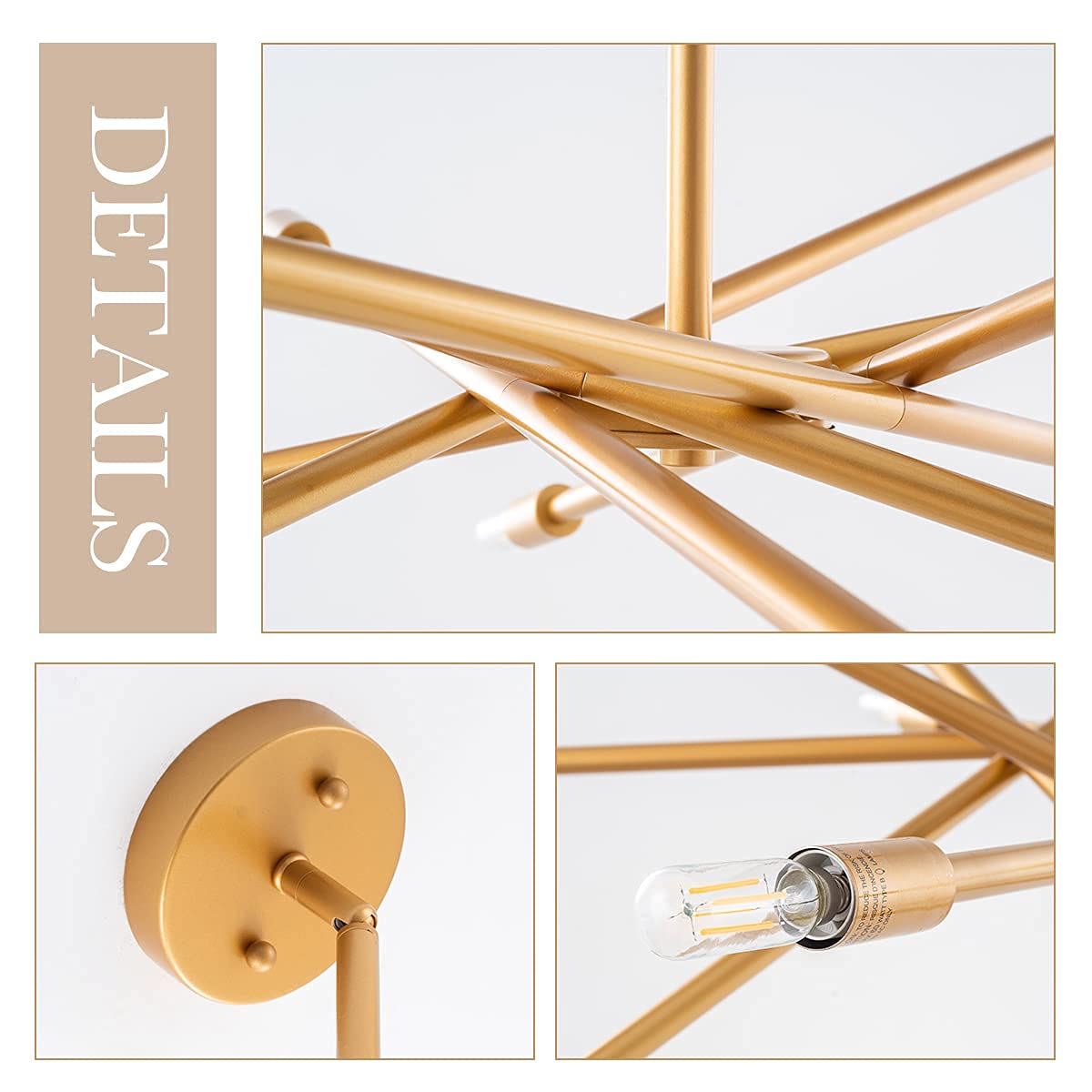 - Design: Mid-century modern 6 Light antique brass brush paint finish chandeliers with adjustable arms allowing you to customize the light look what you like. It can be bring a unique style to your home.