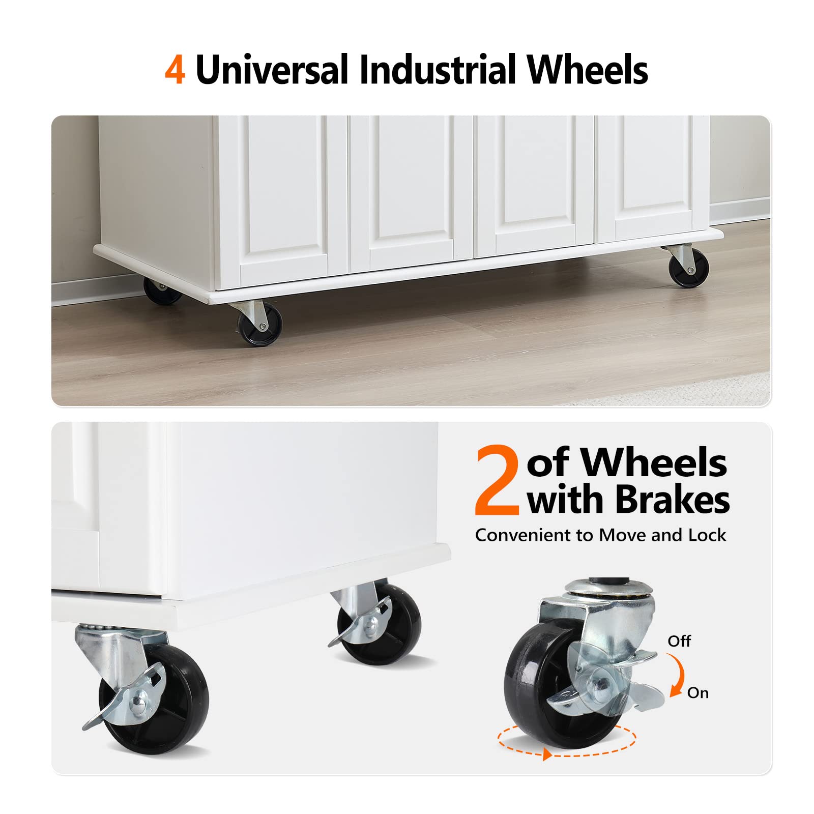 - Convenient Kitchen Island on Wheels --It has 4 heavy-duty casters so could be swiveled freely anywhere and locked into a place. The wheels are made of rubber material to prevent slipping when the cart is in use and increase the friction. Two of the casters under the cart are equipped with breaks to stop and not slide when the kitchen cart is in use.